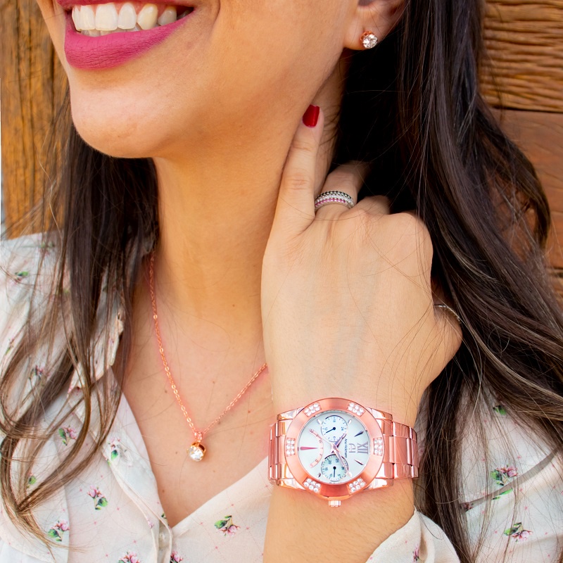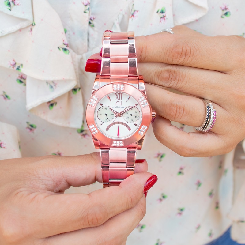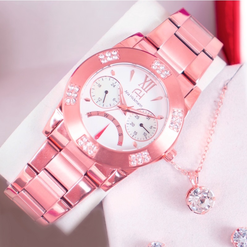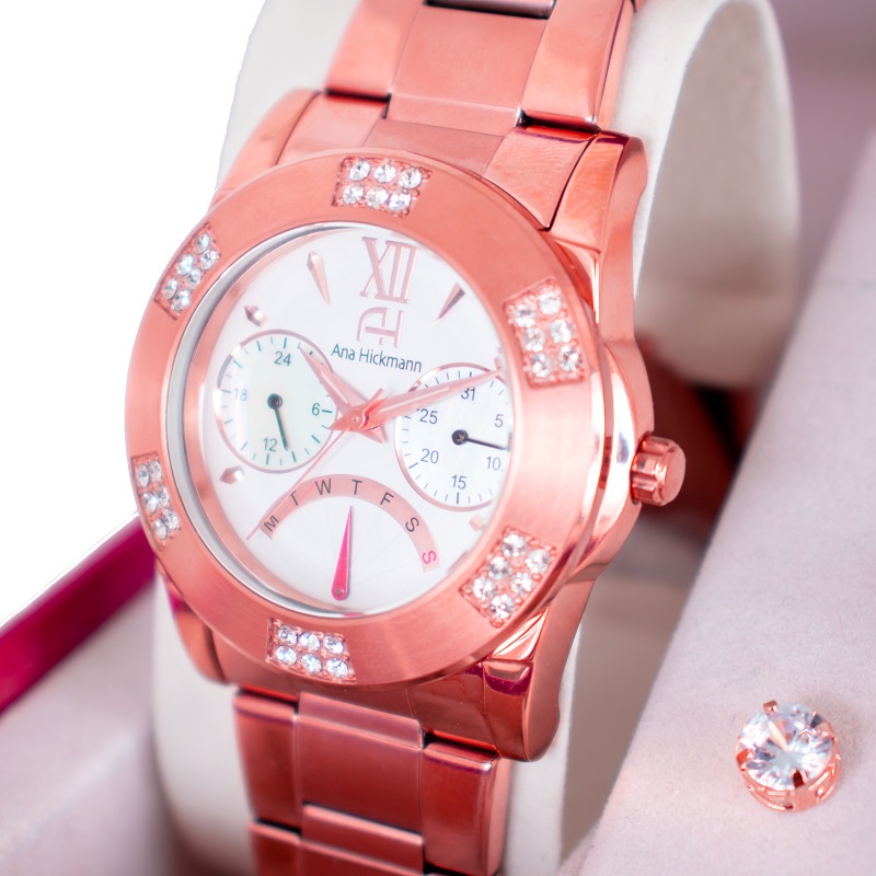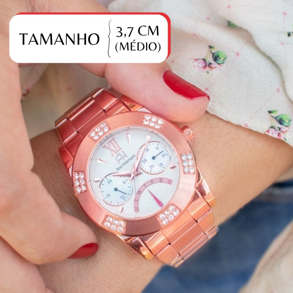 Relógio Feminino Champion Ana Hickmann Rosé Analógico à prova d'água, com cristais, ideal para presente e estilo.