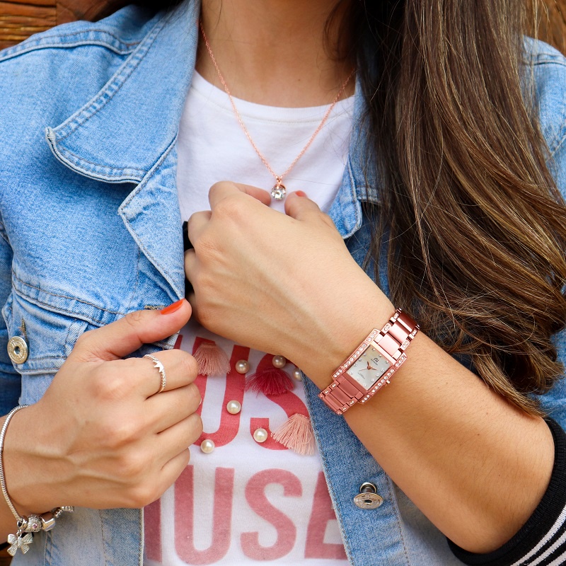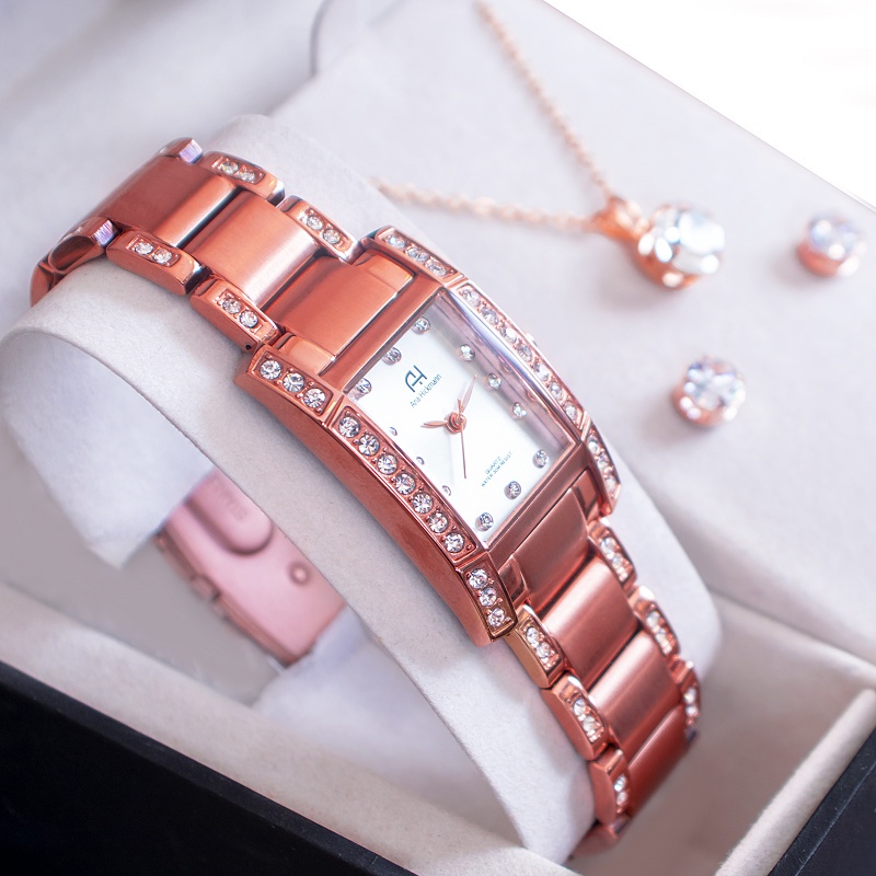 Relógio Ana Hickmann Feminino Rosê Champion Elegante Kit Colar e Brincos Moda AH28044Z