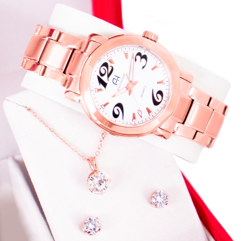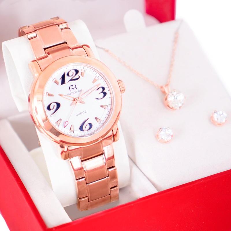 Kit Relógio Feminino Champion Ana Hickmann Rosé À Prova D'Água AH28802Z – Presente Elegante e Original para Mulher.