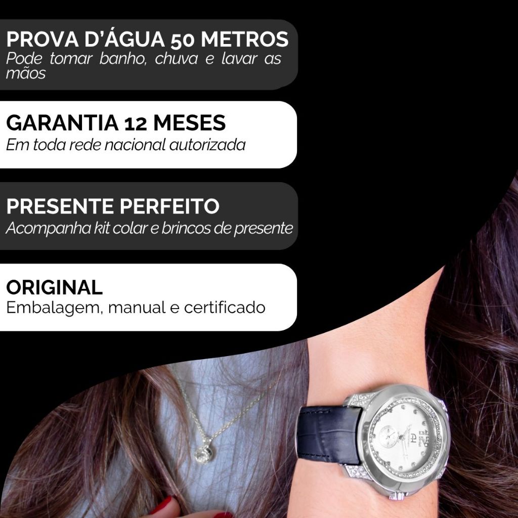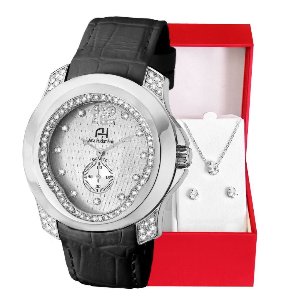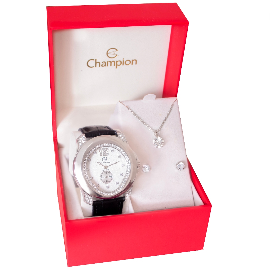 Relógio Feminino Ana Hickmann Analógico A Prova D'Água Couro Original KIt Colar e Brincos AH28286Q