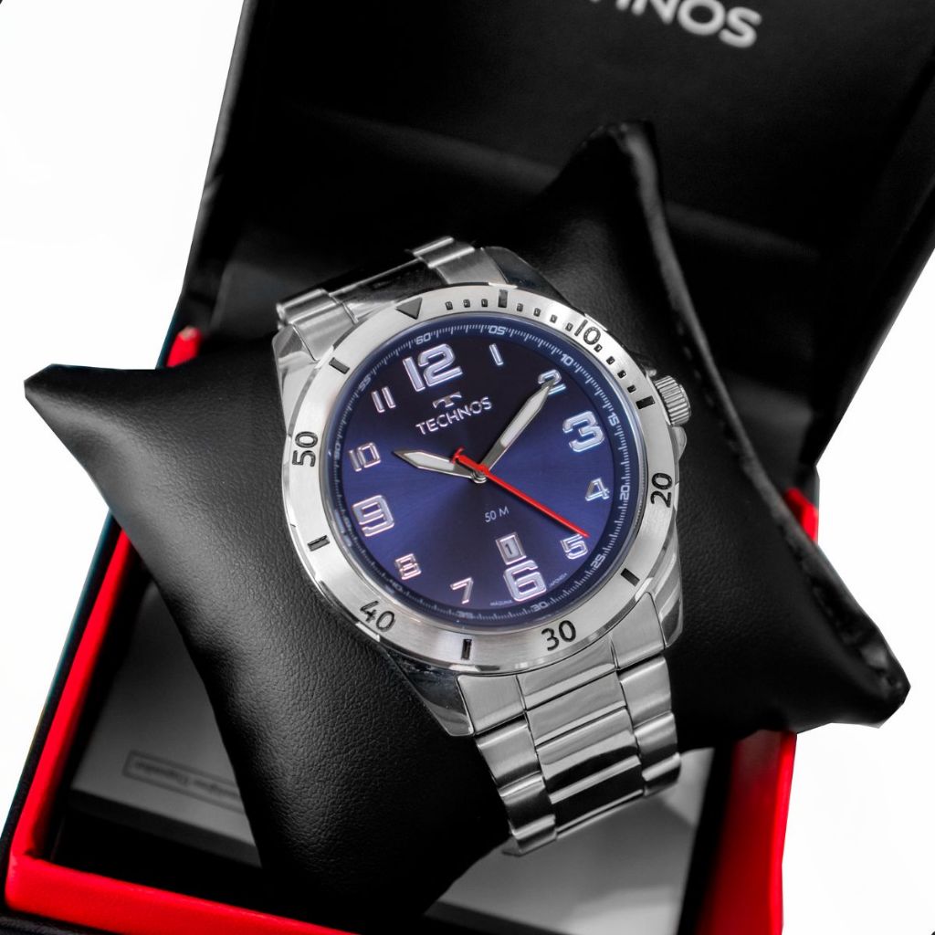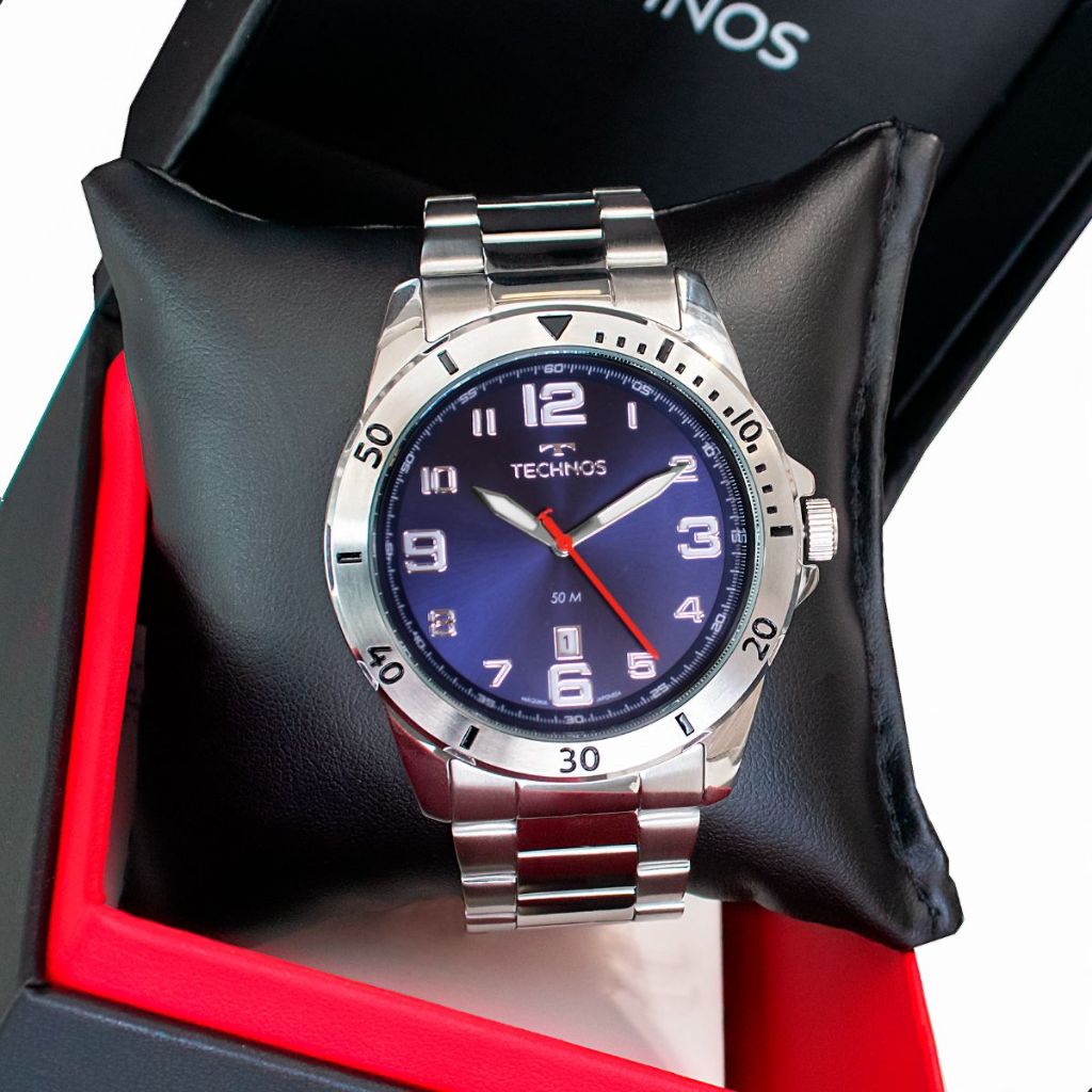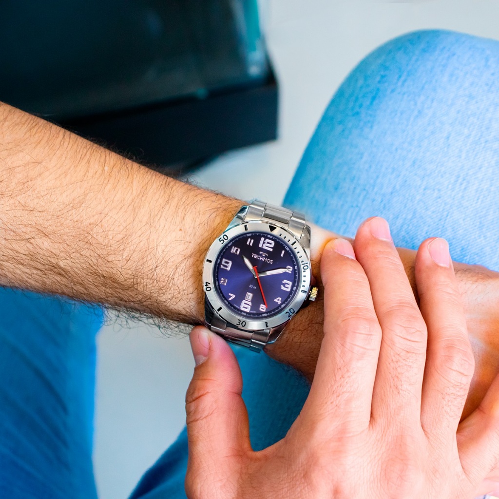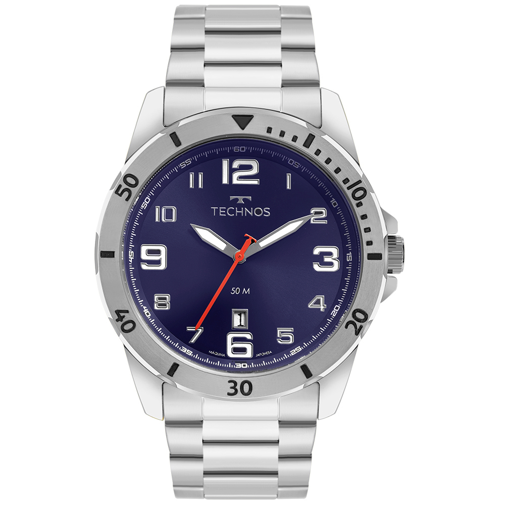 Relógio Technos Masculino Analógico Prata Militar Calendário Original À Prova D'Água 2115MYN/1A