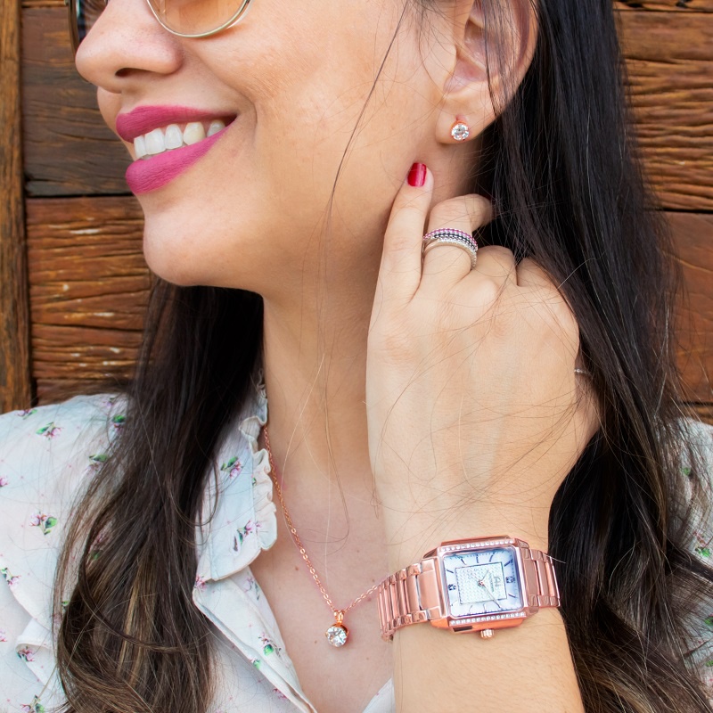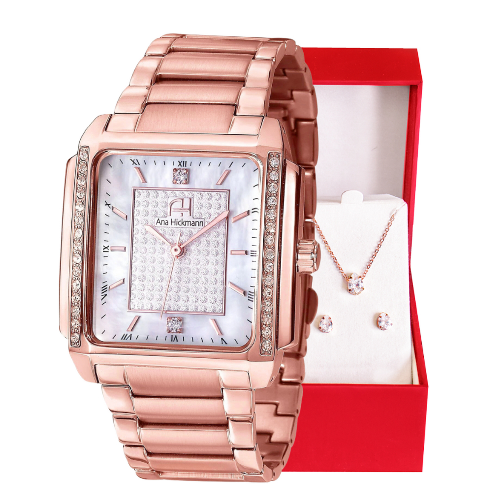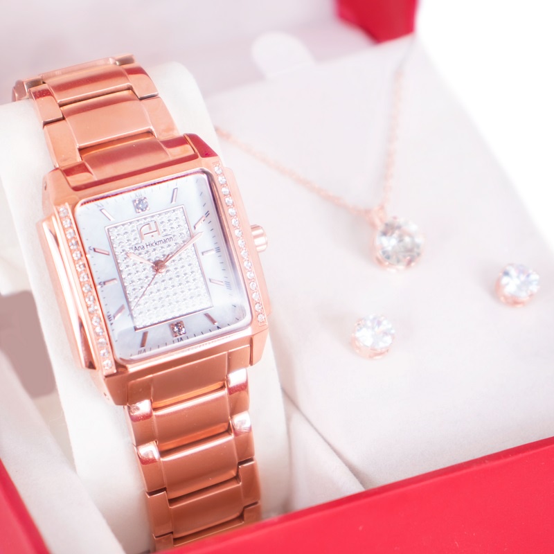 Kit Relógio Feminino Champion Ana Hickmann Rosê Analógico Original Cristais Presente Estilo Mulher Esposa AH28482Z