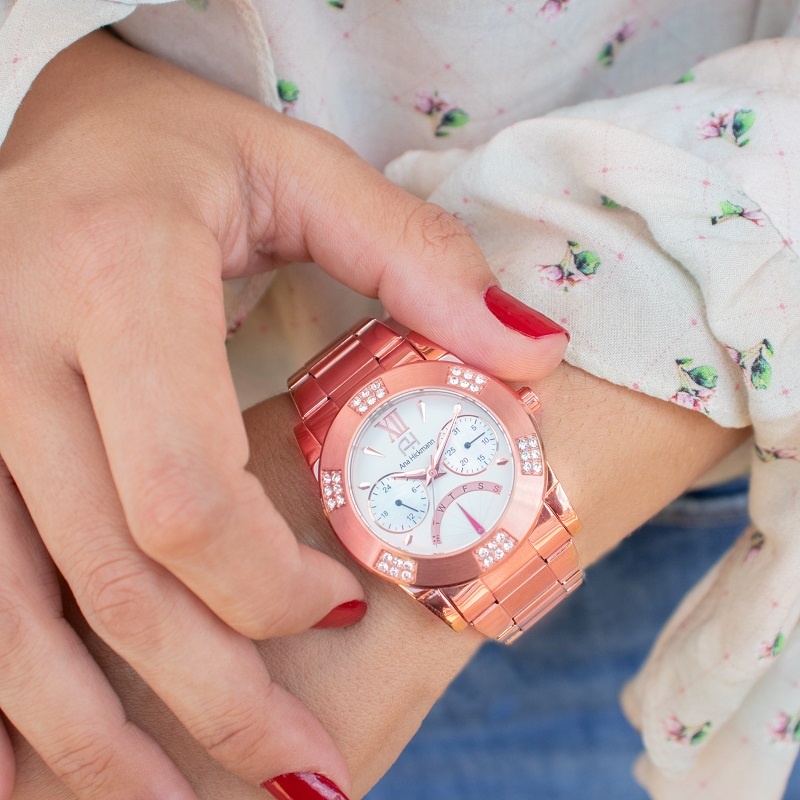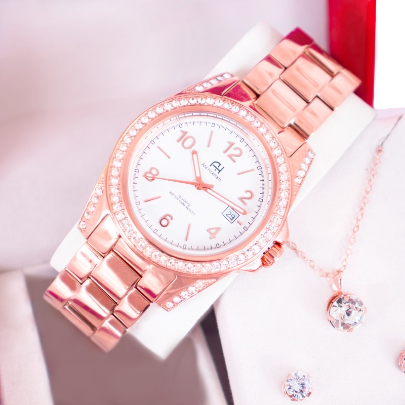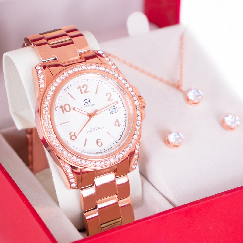 Kit Relógio Feminino Champion Ana Hickmann Analógico Rosé A Prova D'Água Cristais Gift AH20159Z