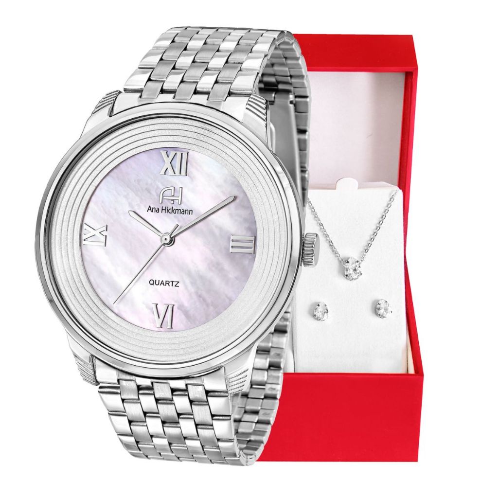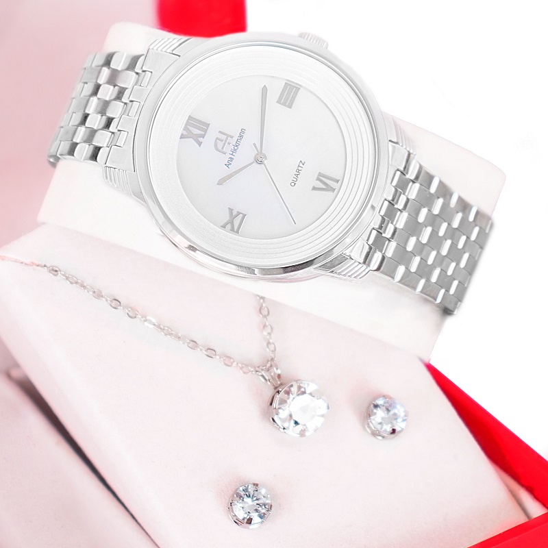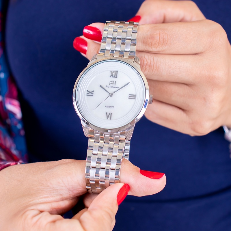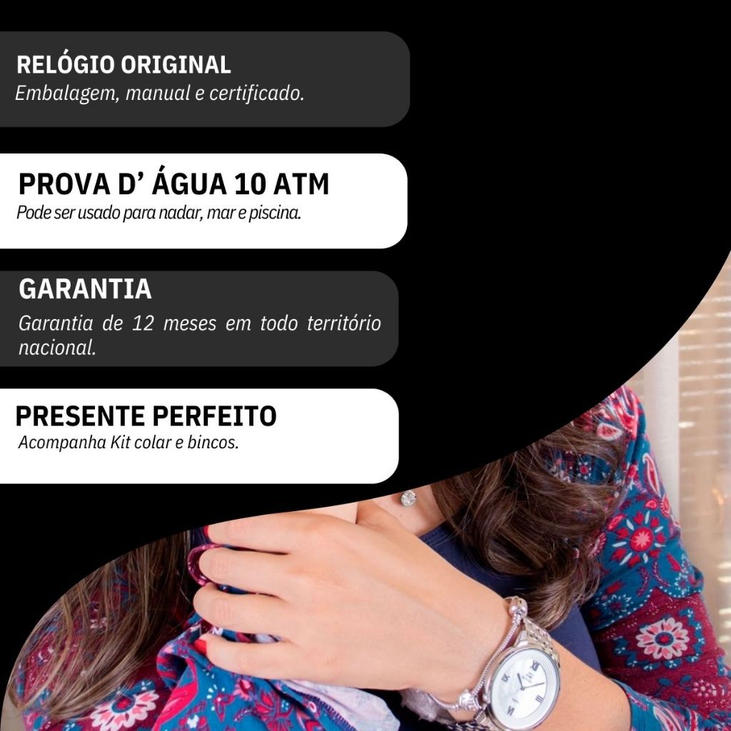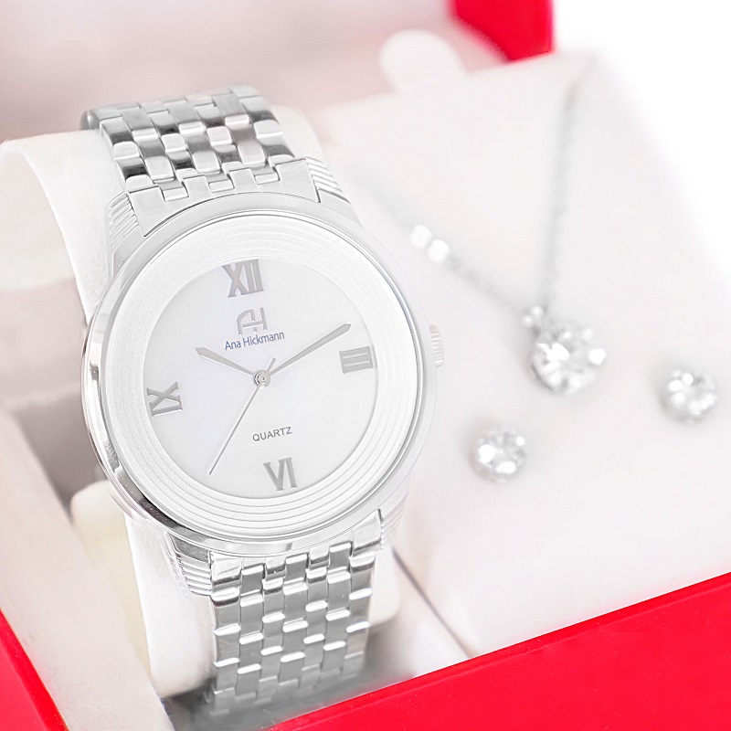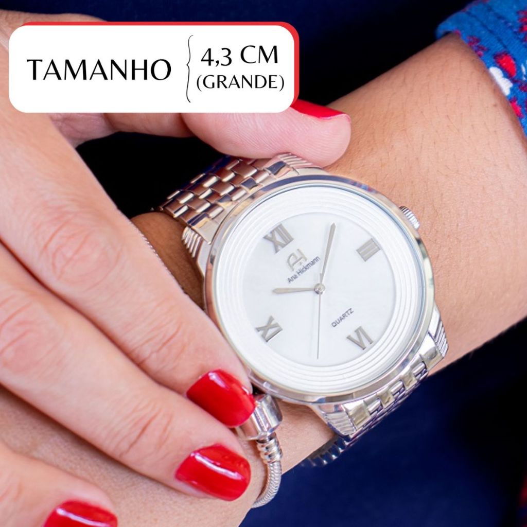 Kit Relógio Feminino Champion Ana Hickmann Analógico A Prova D'Àgua Prata Original Barato AH28919Q