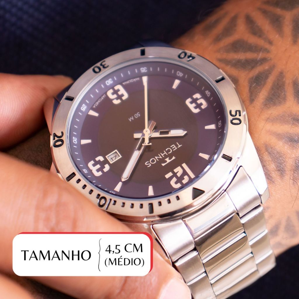 Relógio Technos Masculino Prata Estilo Militar, Analógico, Calendário, Resistente à Água 2115MYN/1A