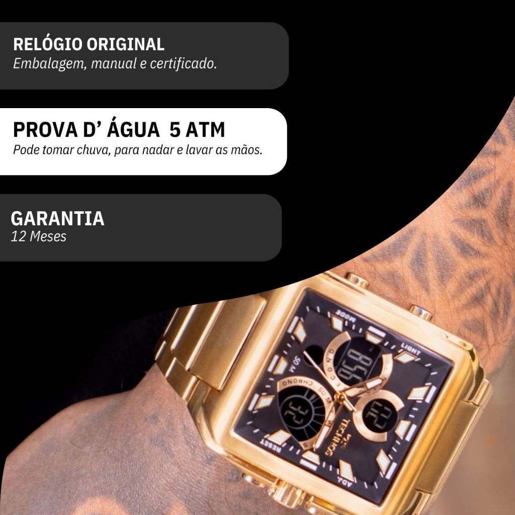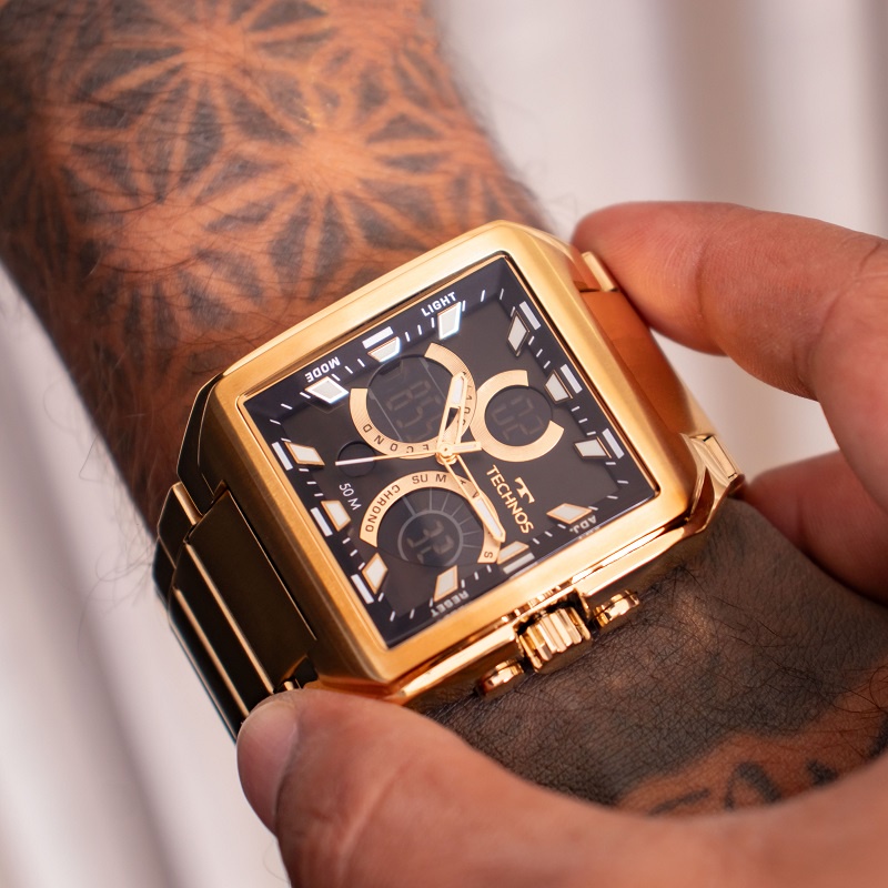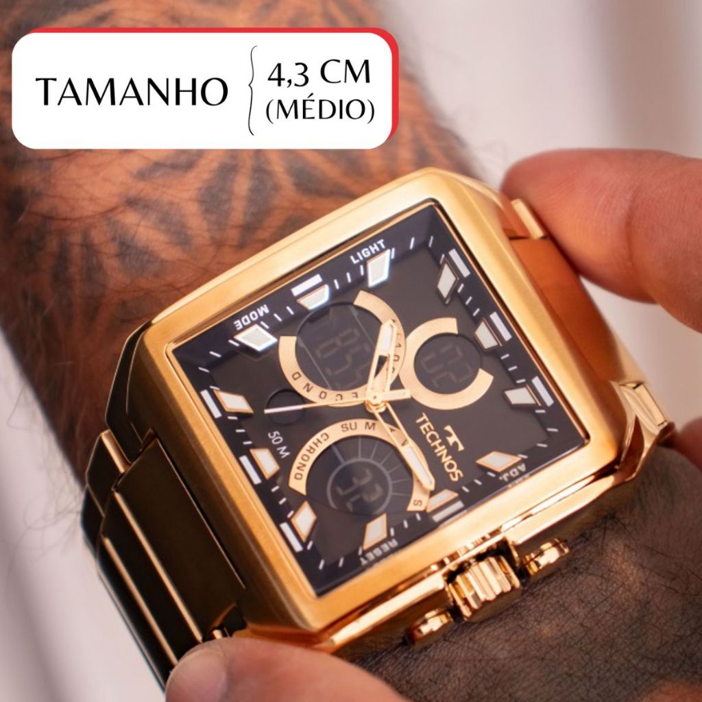 Relógio Masculino Technos Ts Digitech Anadigi Dourado A Prova D'Água Original Presente BJ3940AA/1P
