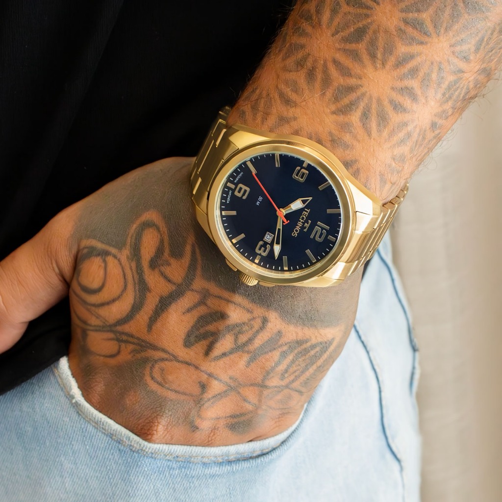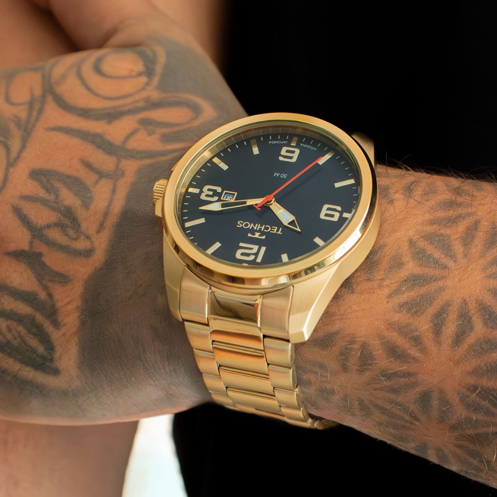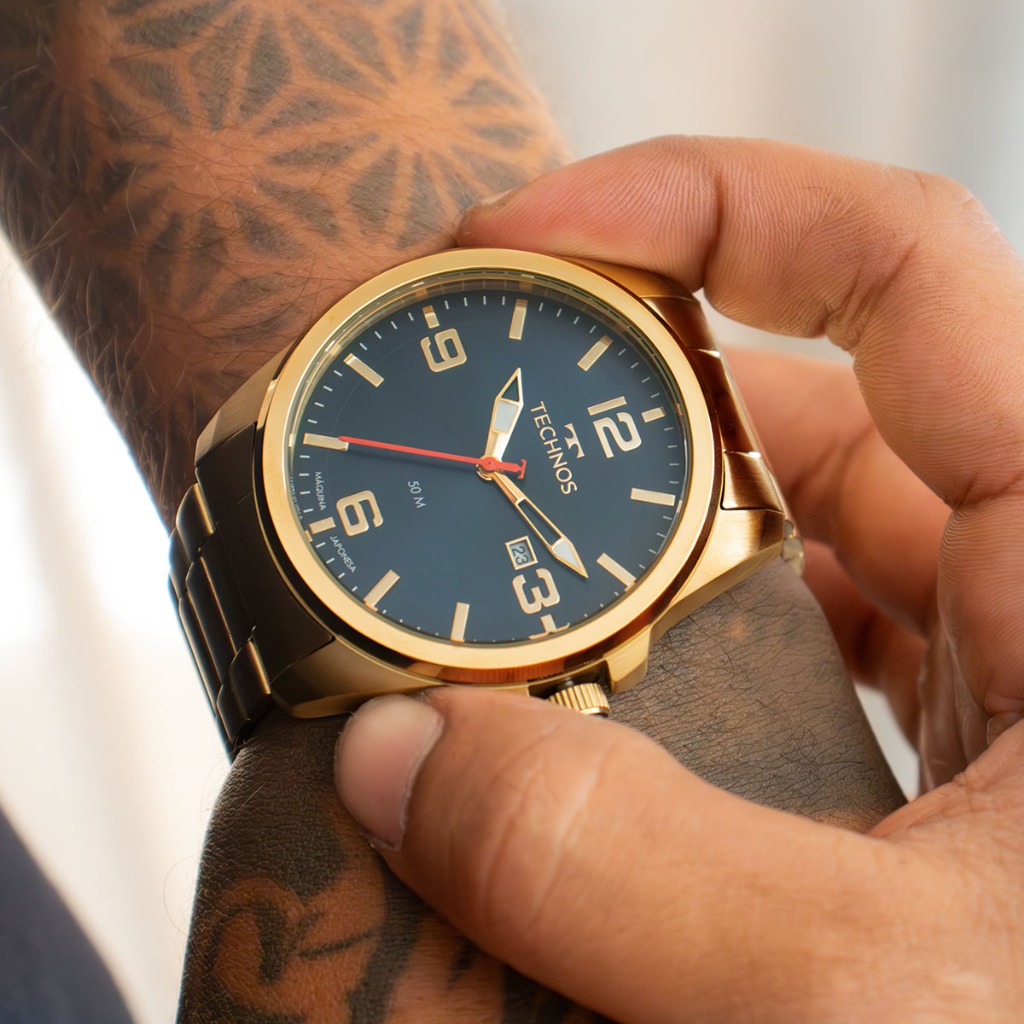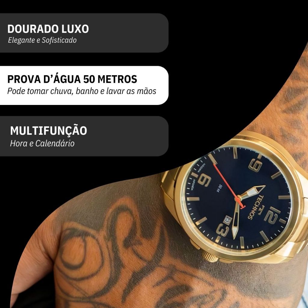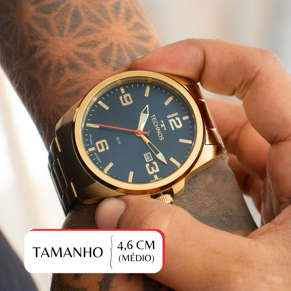 Relógio Masculino Technos Analógico Dourado Namorado Pai Barato Calendário 2115NAT/1A