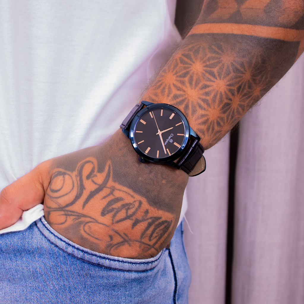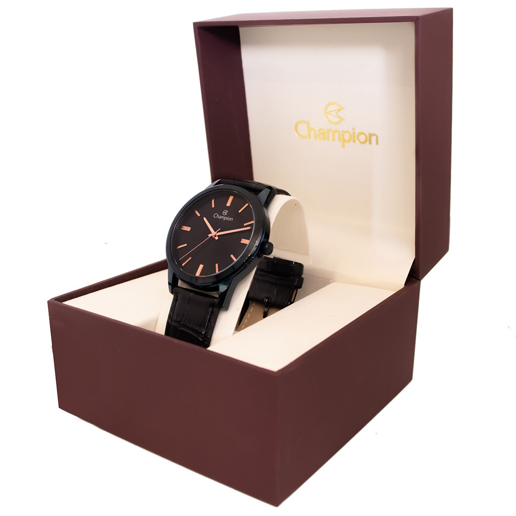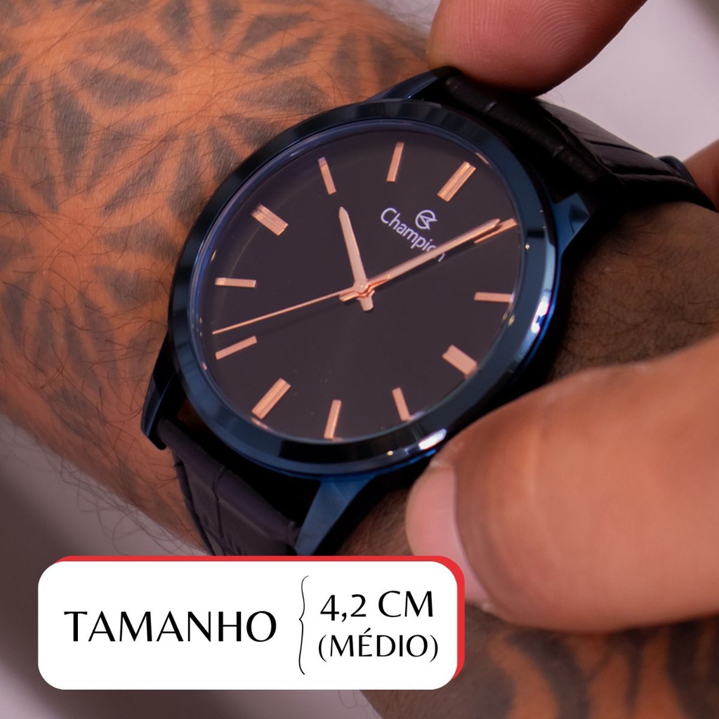 Relógio Masculino Champion Azul Couro Preto Resistente a Água pai marido namorado presente CN20702N