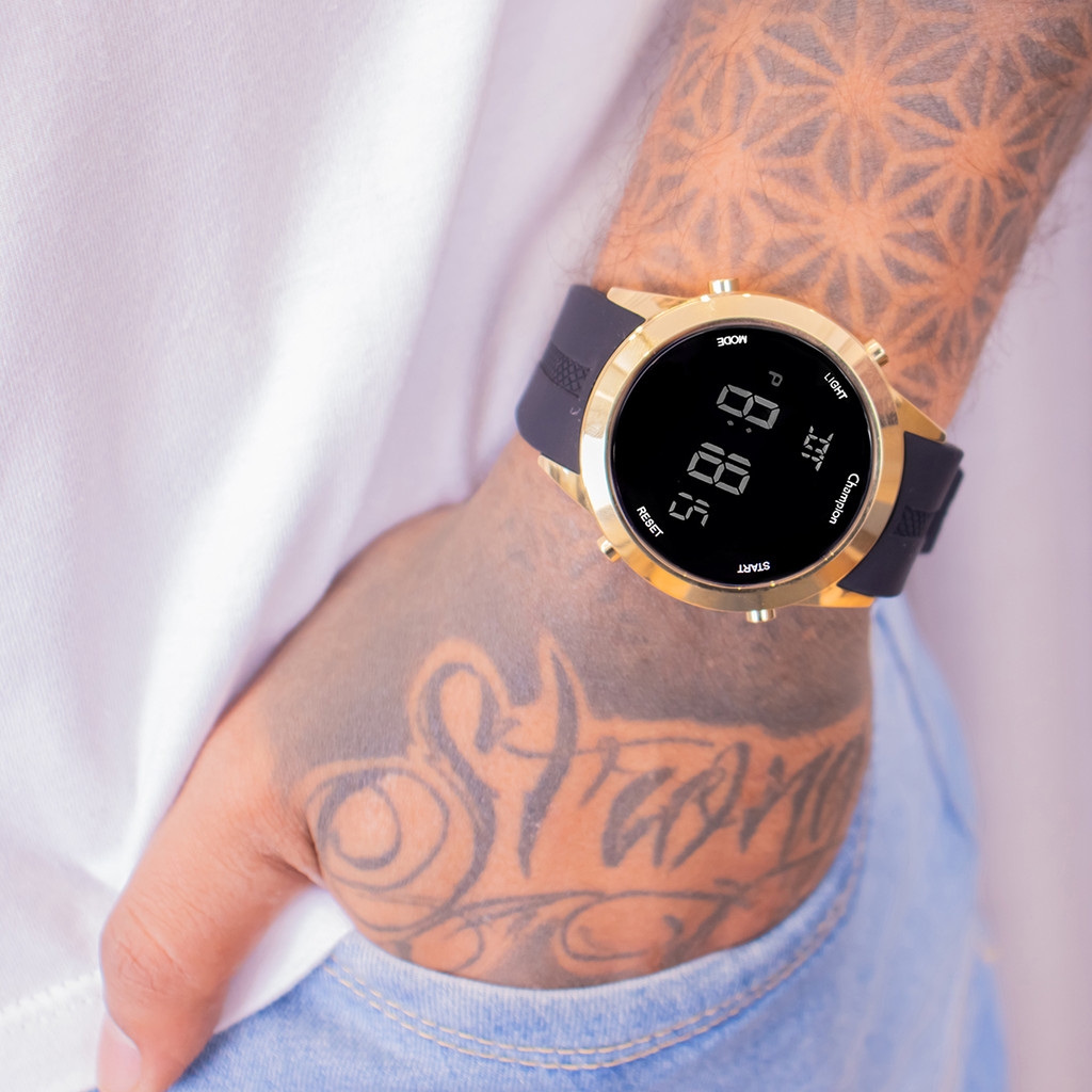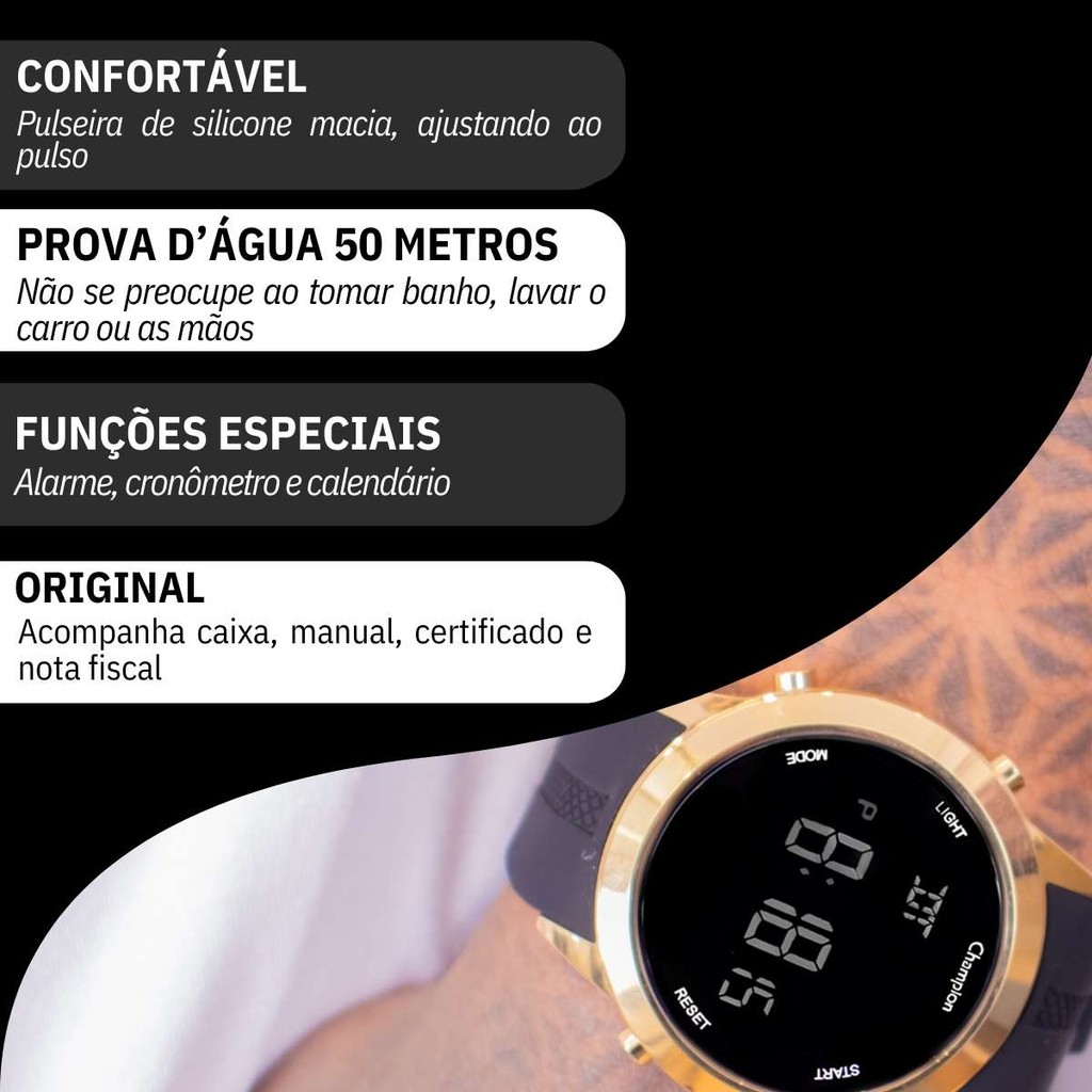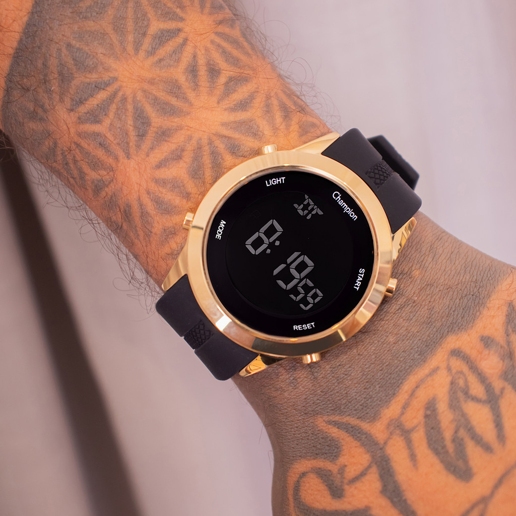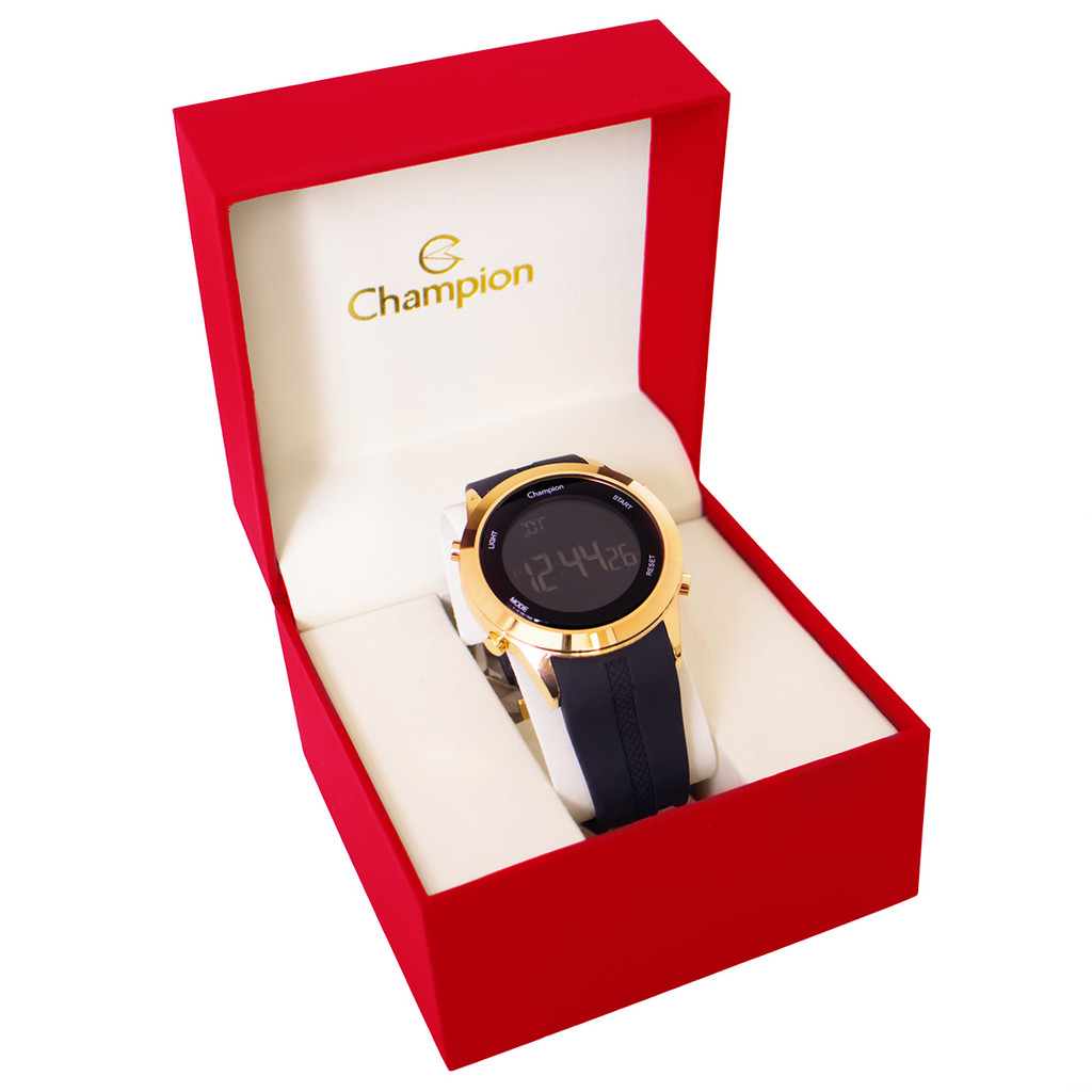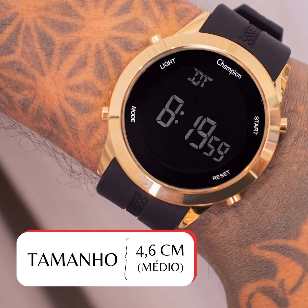 Relógio de Pulso Masculino Champion Digital Dourado Silicone A Prova D'Água Original Namorado Pai Barato CH40259B.
