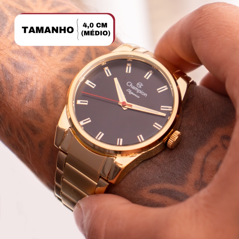 Relógio Champion Masculino Analógico Dourado Original À Prova D'Água Presente CN27590U