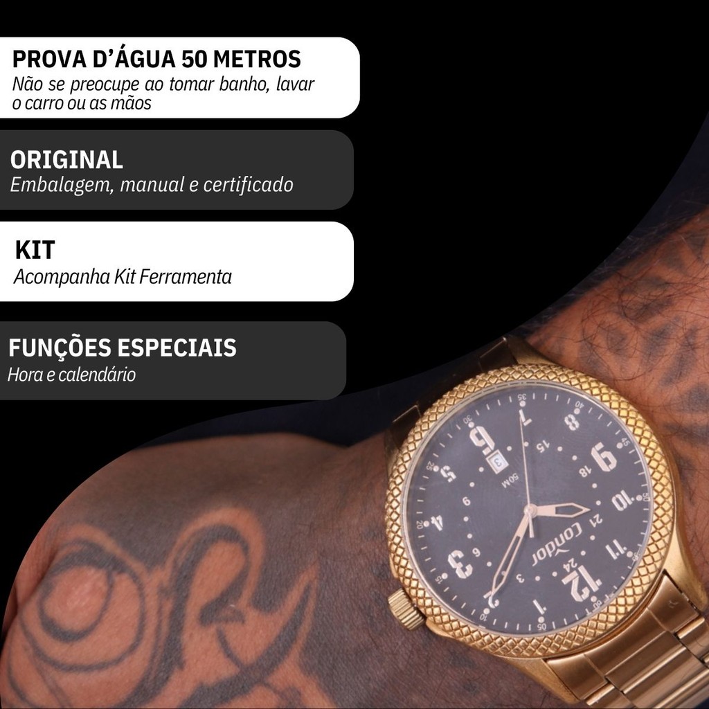 Relógio Masculino Condor Analógico Dourado CO2115MYX/K4P + Kit