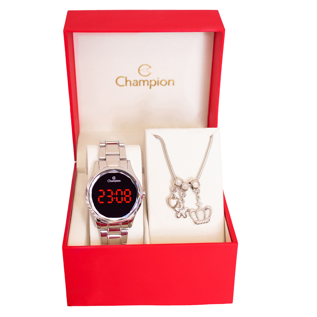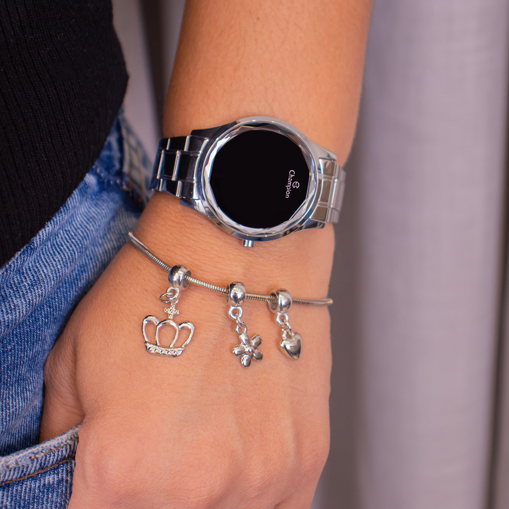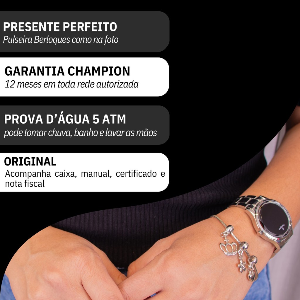 Relógio de Pulso Feminino Champion Digital Prata CH48019T + Pulseira Berloques