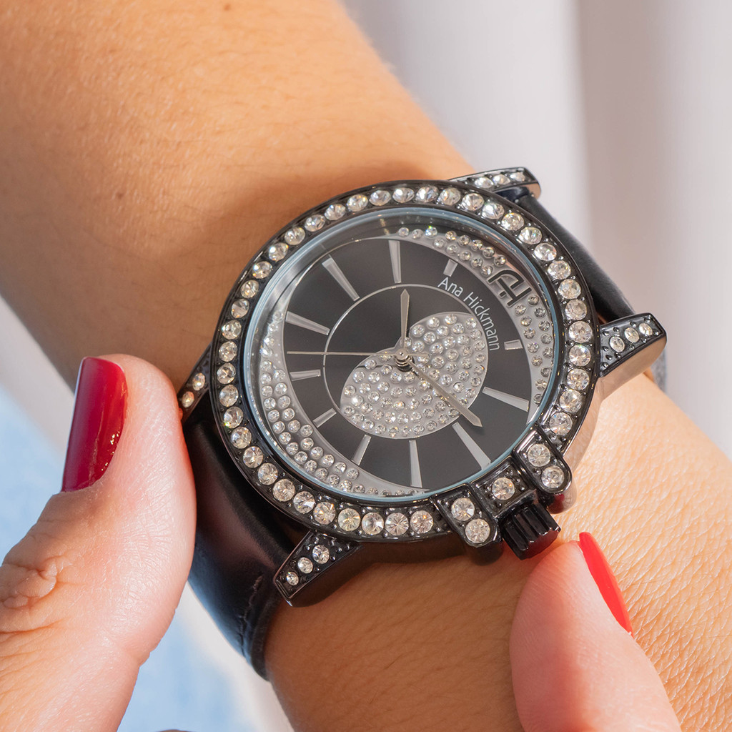 Relógio Champion Ana Hickmann Couro Preto AH28160T Colar e Brincos