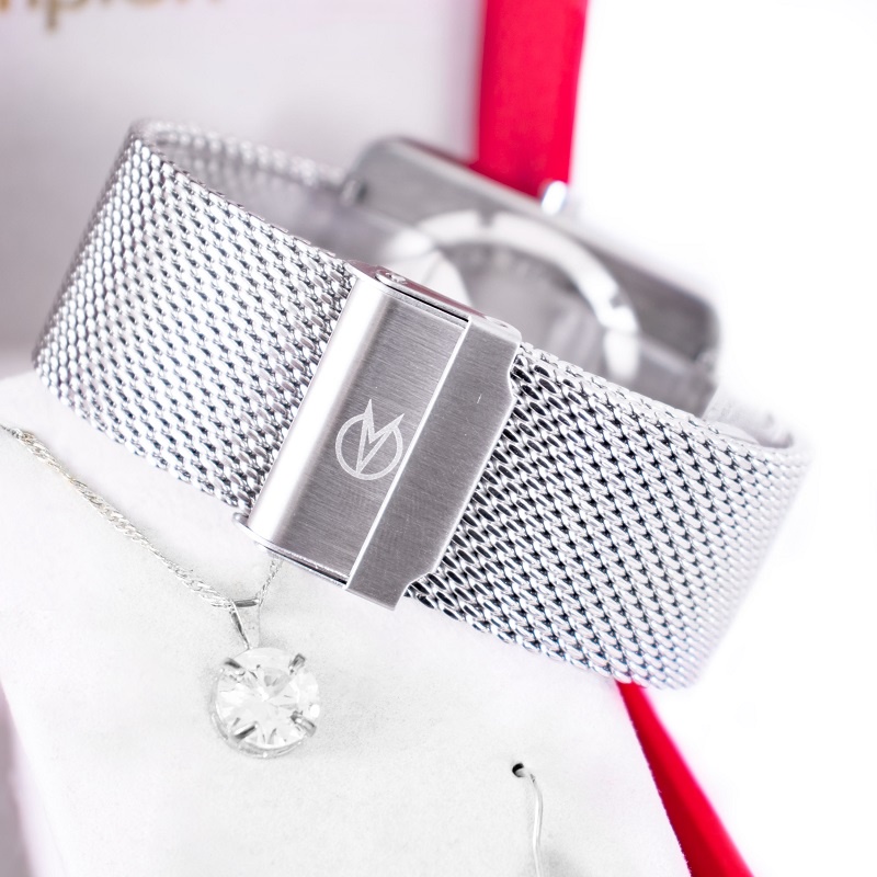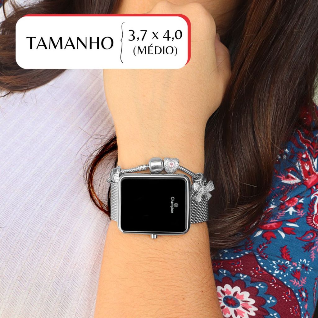 Relógio Champion Feminino Digital Quadrado Prata + Kit Colar e Brincos Original Mãe Barato CH40080T