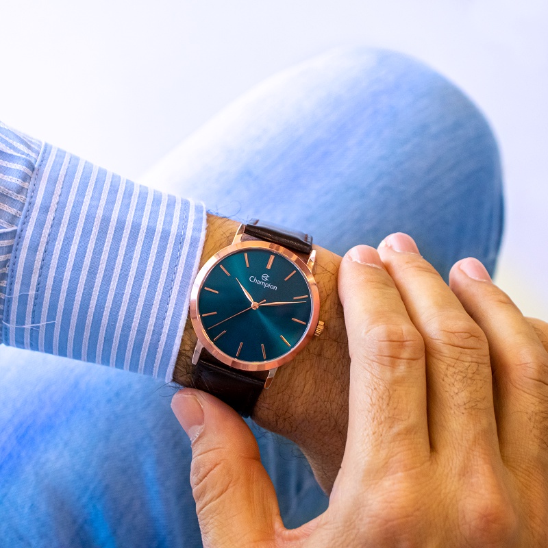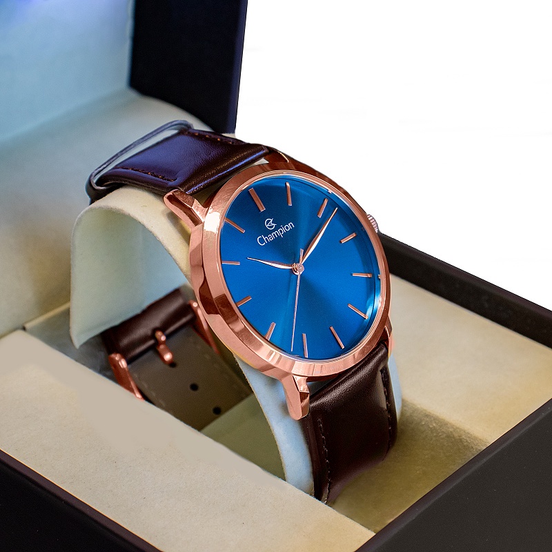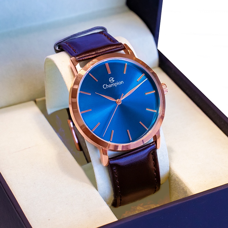 Relógio Champion Masculino Analógico Azu Couro Marrom Original À Prova D'Água Presente CN20677A