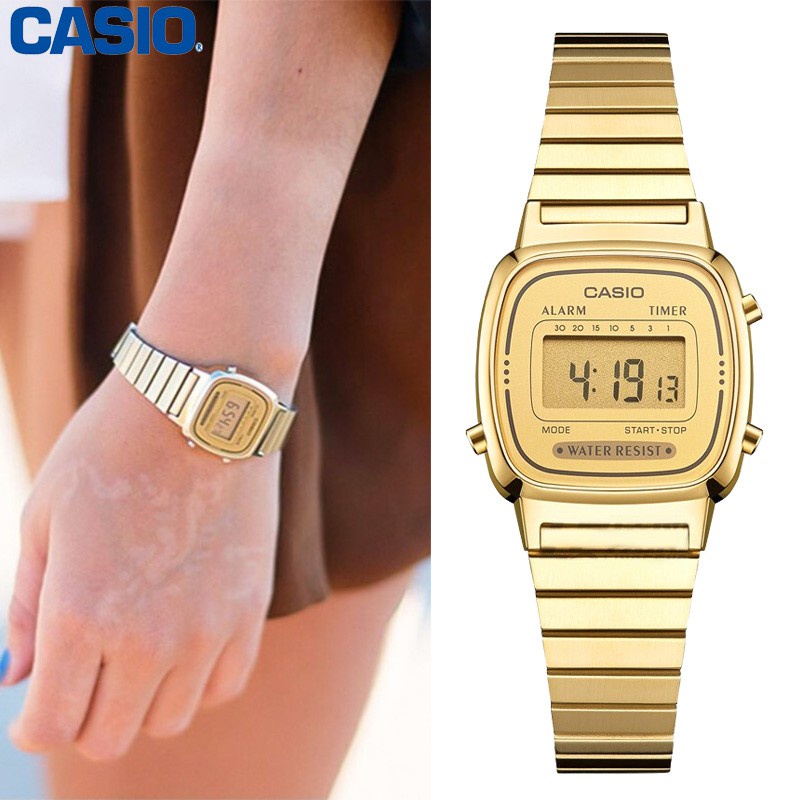 Relógio Casio feminino dourado vintage mini LA670WGA-9DF. Estilo, charme e presente ideal para mulheres