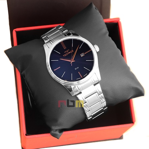 Relógio Masculino Technos Analógico Prata A Prova D'Água Original Presente Original Presente Moda Gift Aniversário Tendência Estilo Homem Esposo Marido Namorado Pai Barato Um Ano 2115MPM/1K