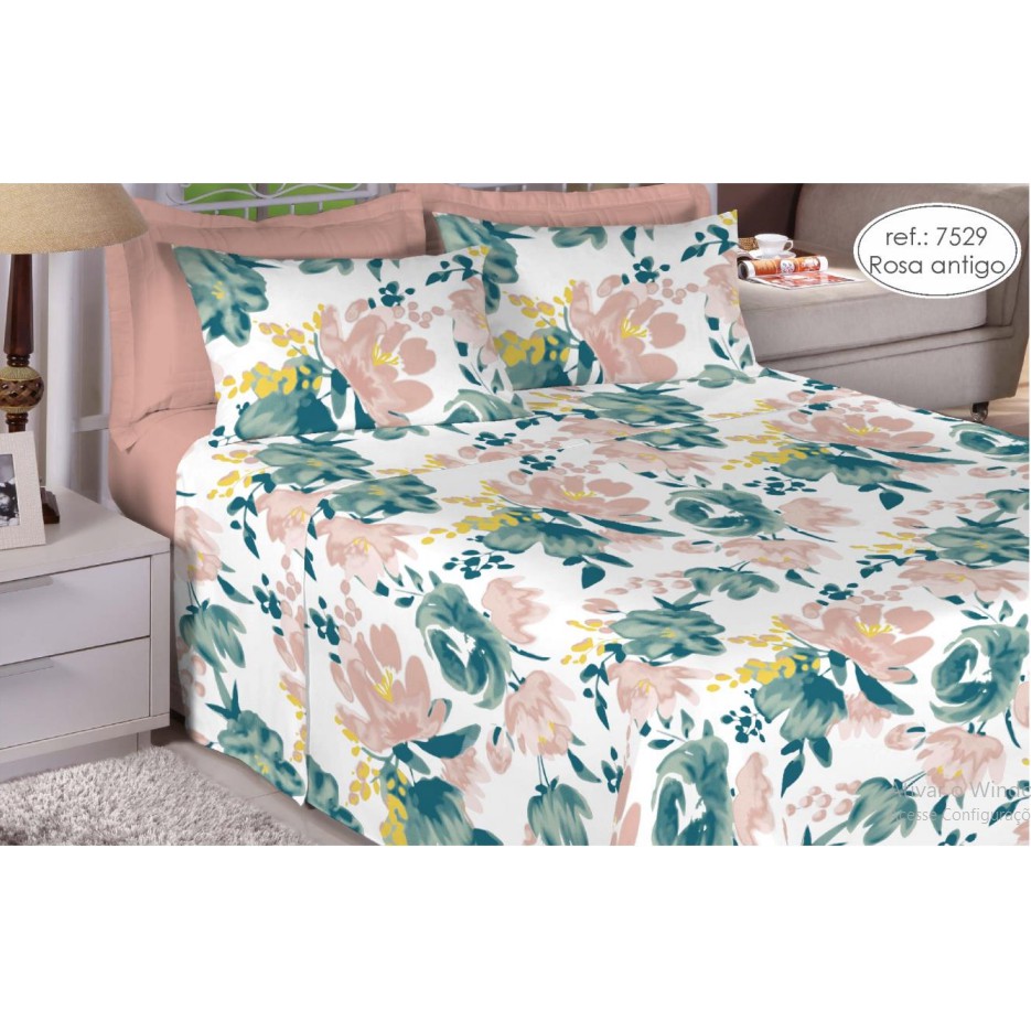 Jogo de Cama Lençol Casal 4 peças 100% Algodão Estampado Elástico