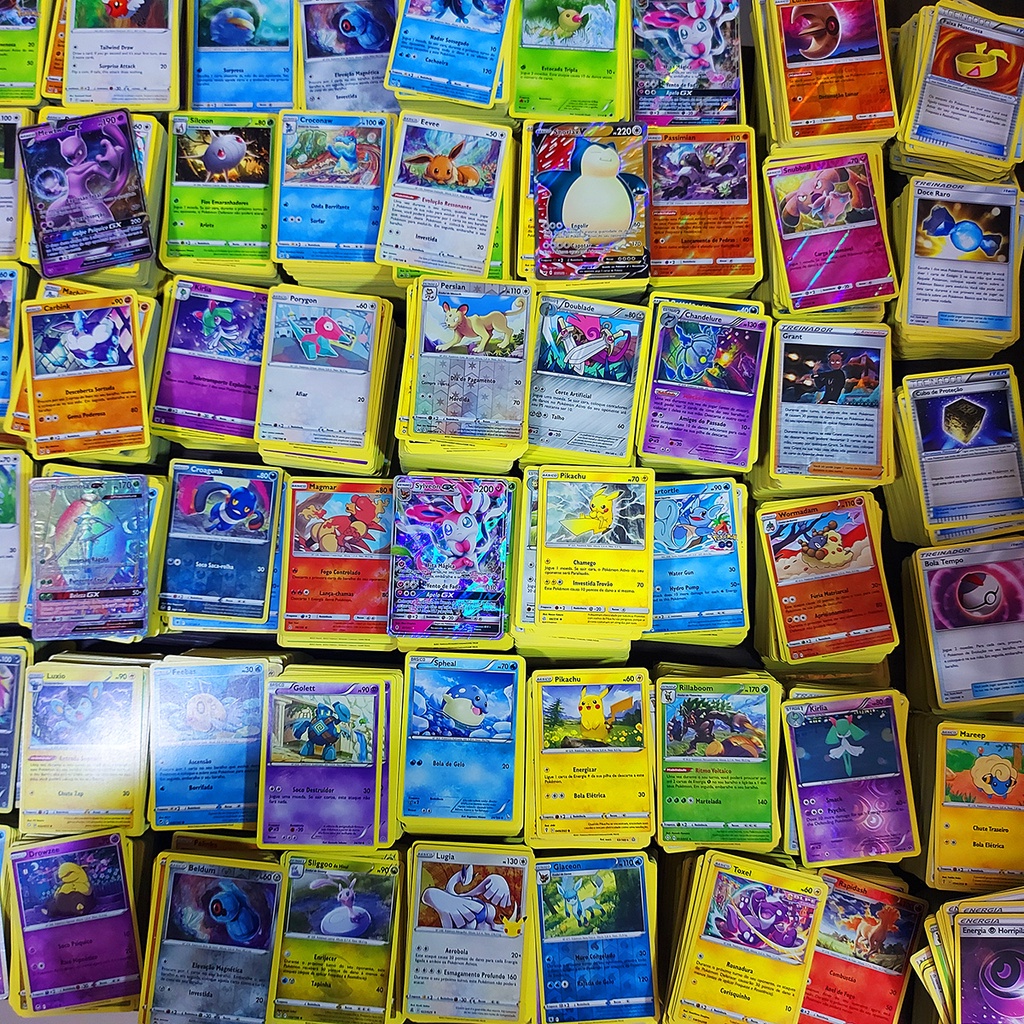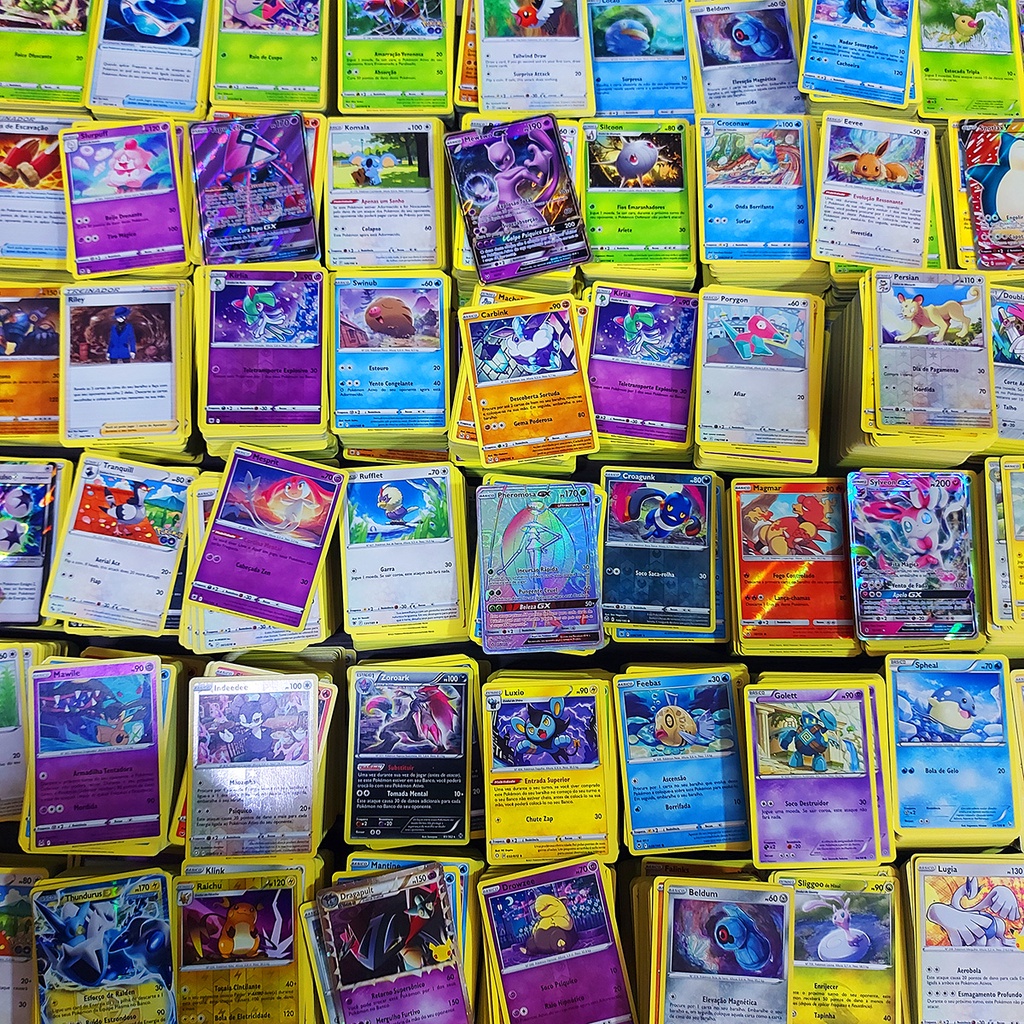 Lotes de 100, 50 ou 20 Cartas Pokemon Com Brilhante Original Copag