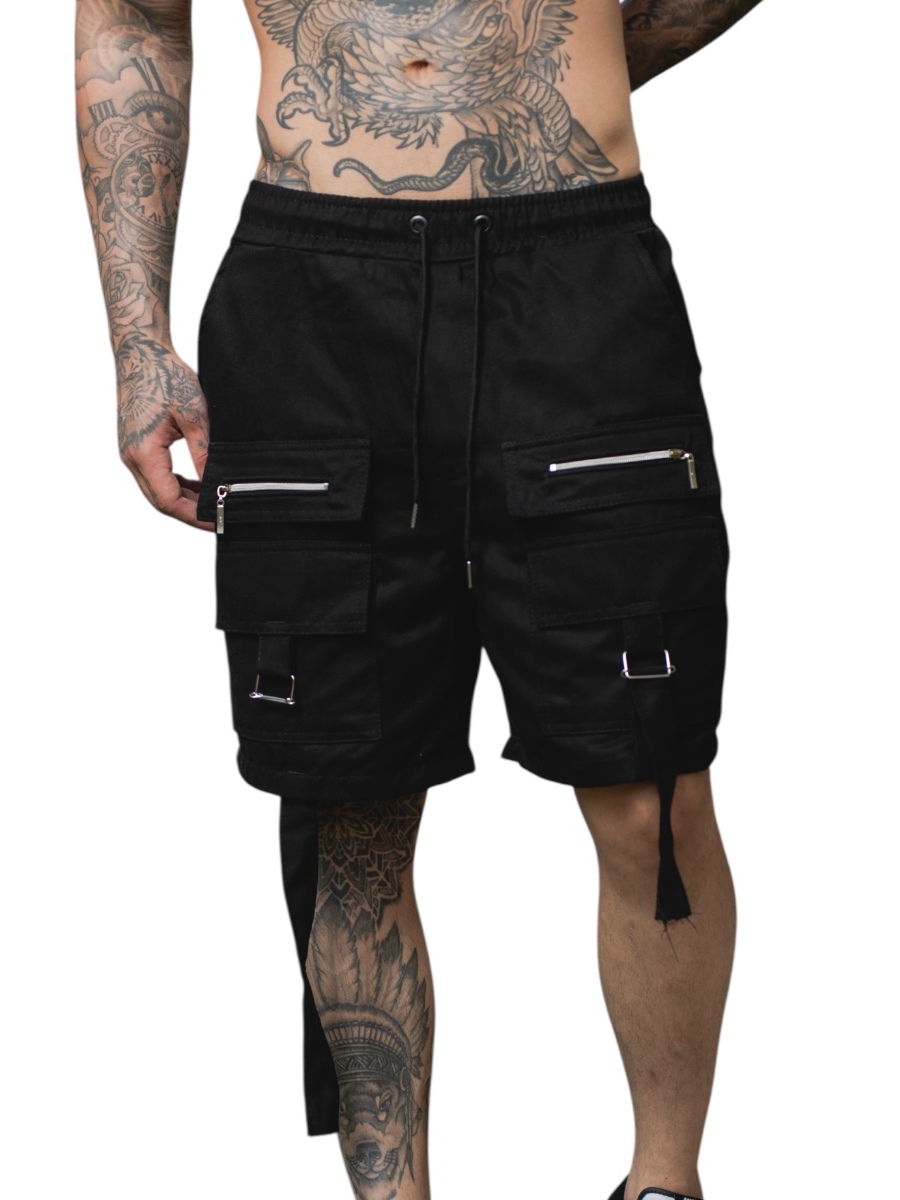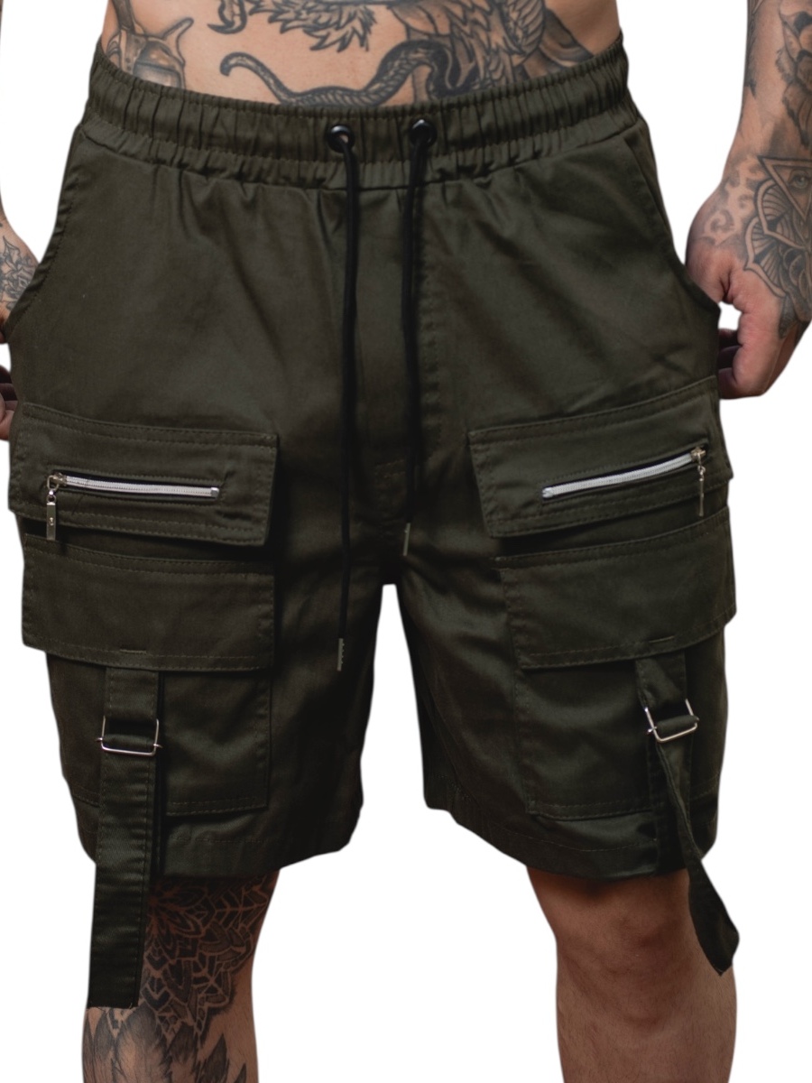 Bermuda cargo com zíper e fita