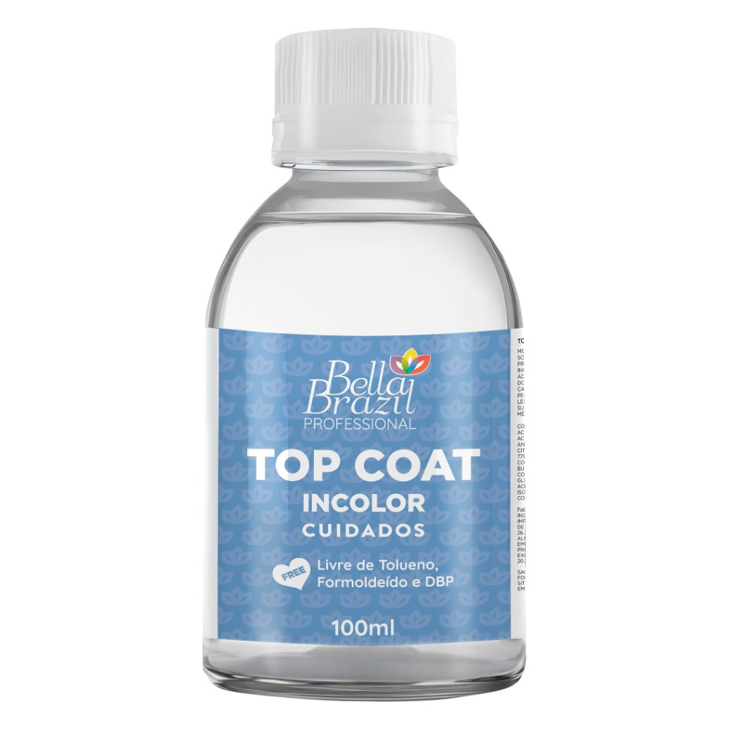 Kit 2 Top Coat Incolor 100ml Bella Brazil Linha Professional Free