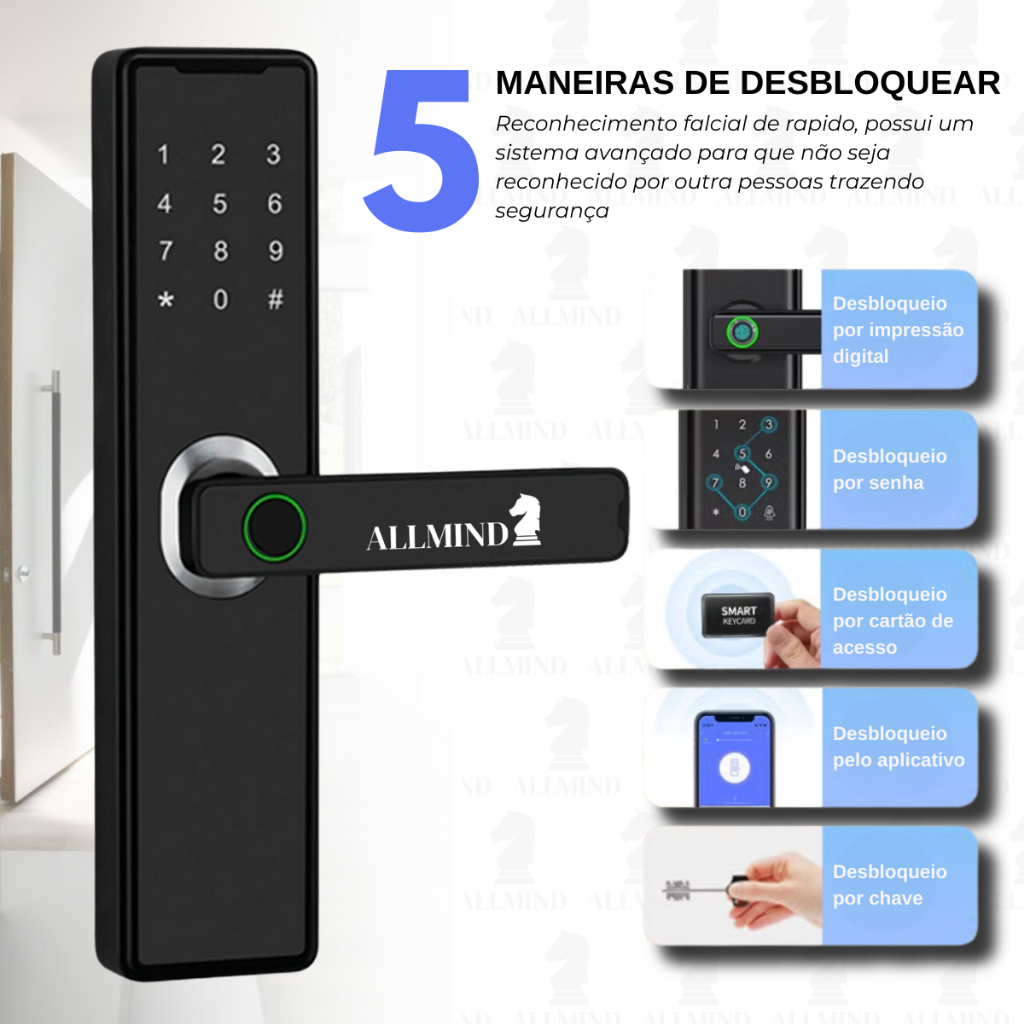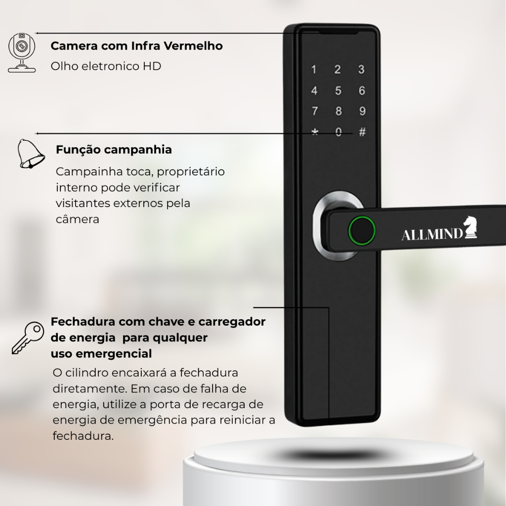 Fechadura Digital Eletronica Inteligente Senha Biometrica Cartão Facial Wi-Fi Tipo Tuya Intelbras