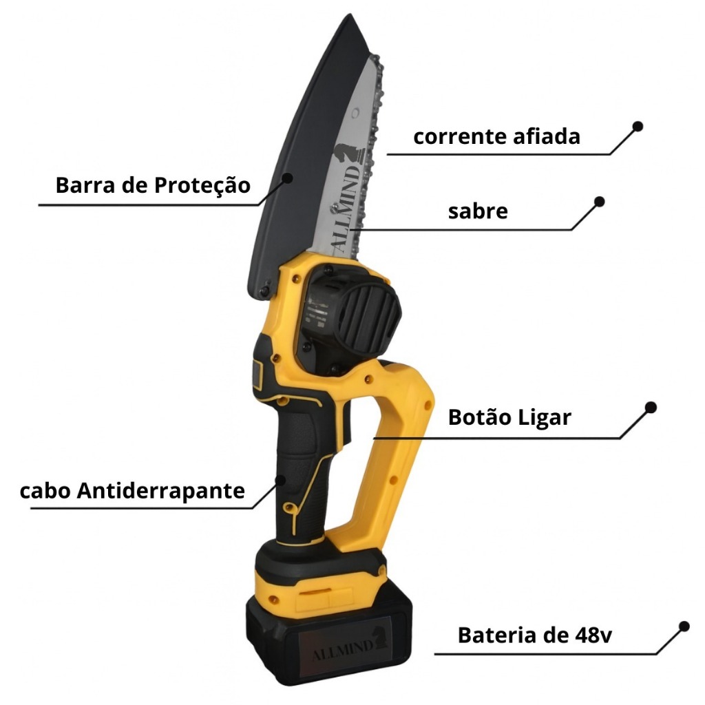 Mini Motosserra Motoserra Moto Serra A Bateria 25v Com Extensor de 3 Metros Multifuncional