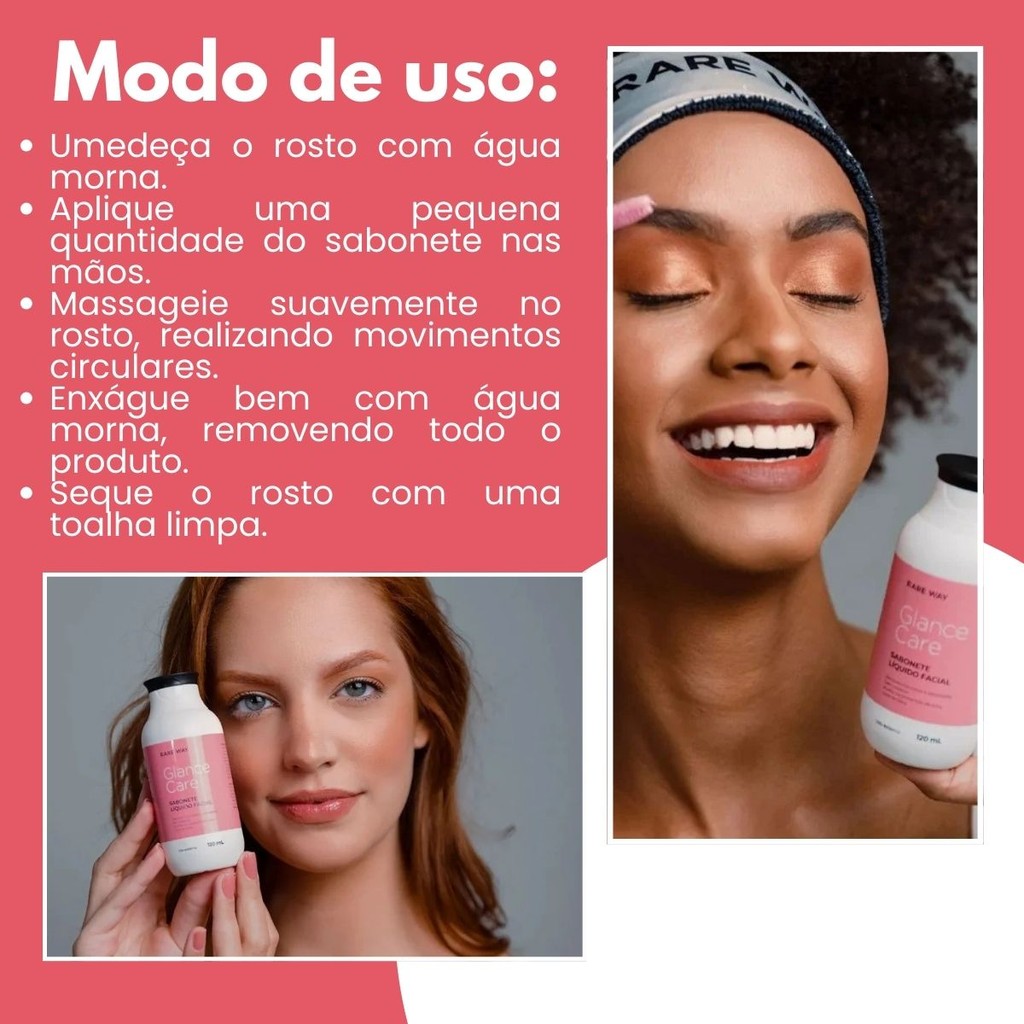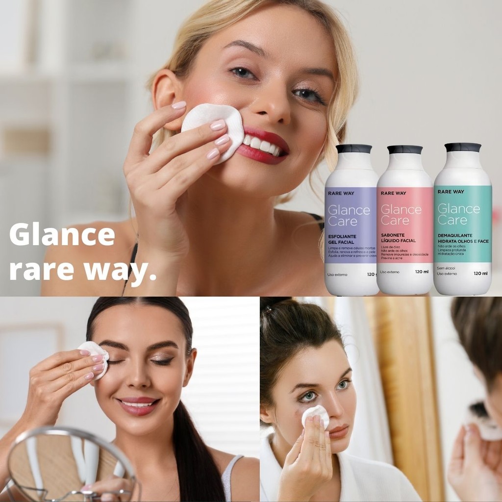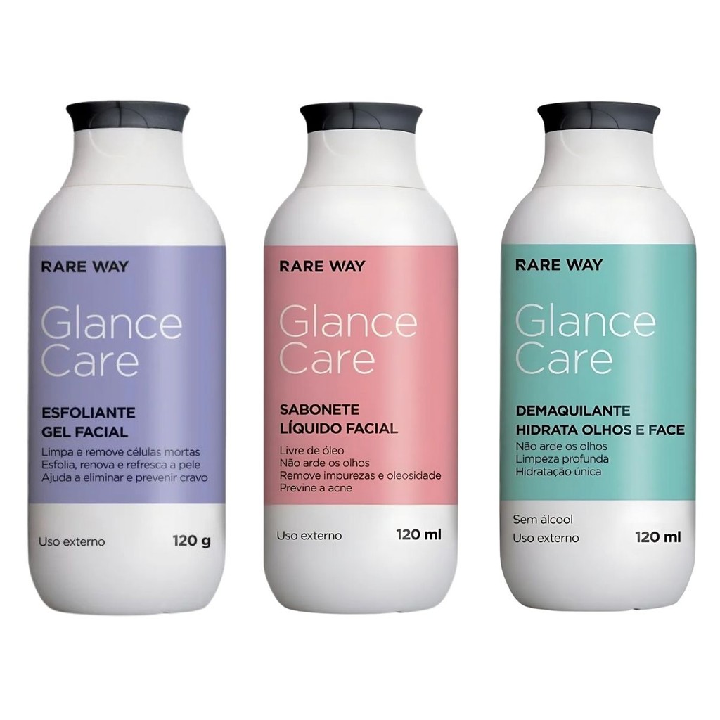 Kit Sabonete Facial + Esfoliante + Demaquilante Glance Rare Way - Kit SkinCare, Cuidado Facial, kit skincare presente
