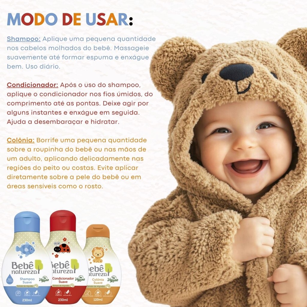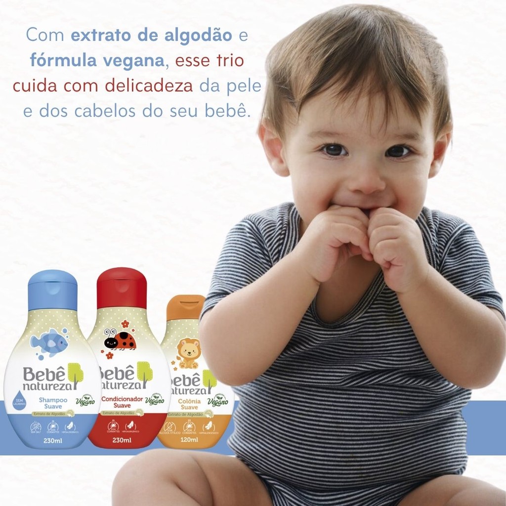 Kit Shampoo 230 Ml + Condicionador 230 Ml + Colônia Linha Suave 120 Ml Bebê Natureza