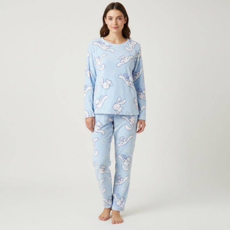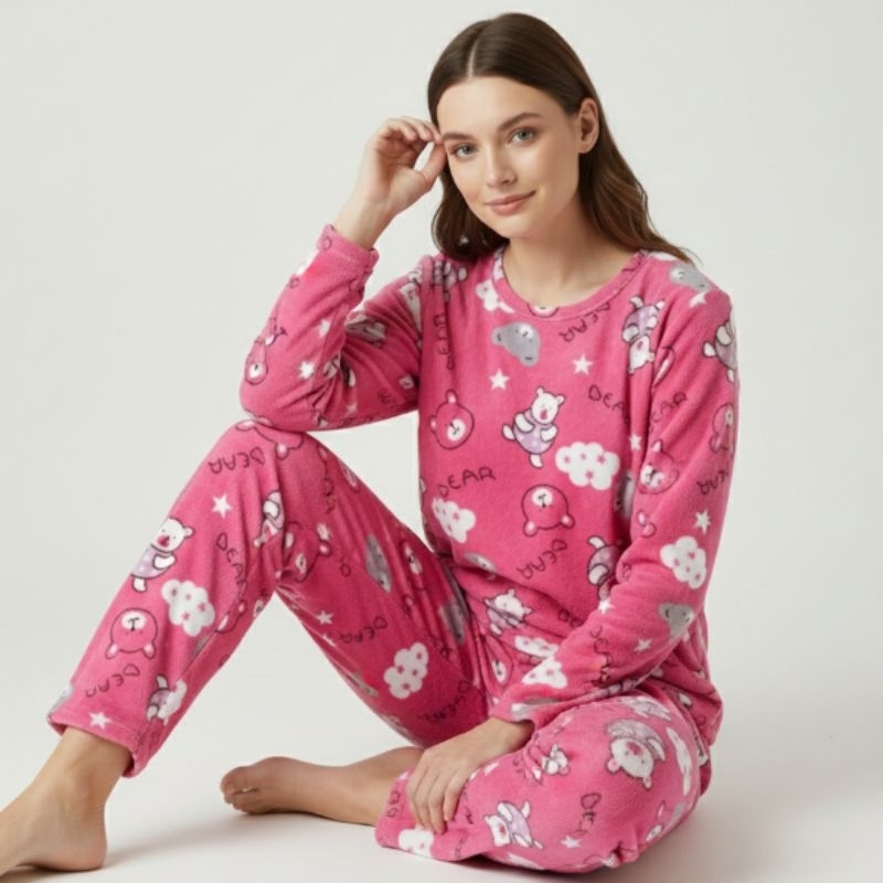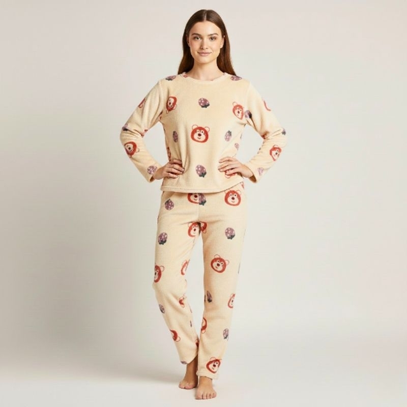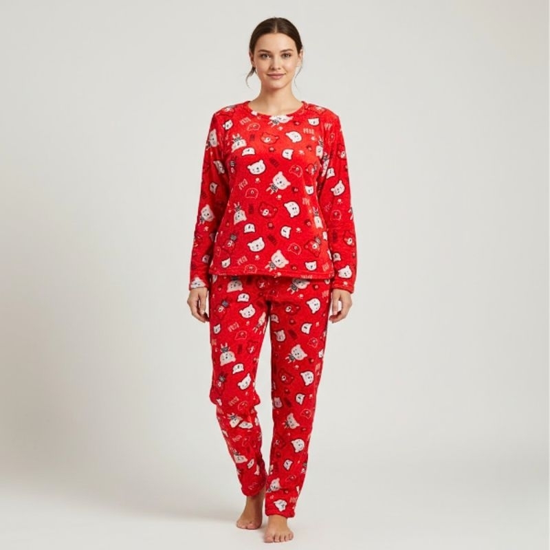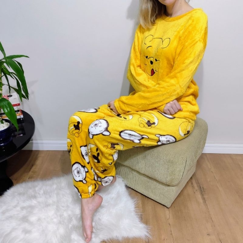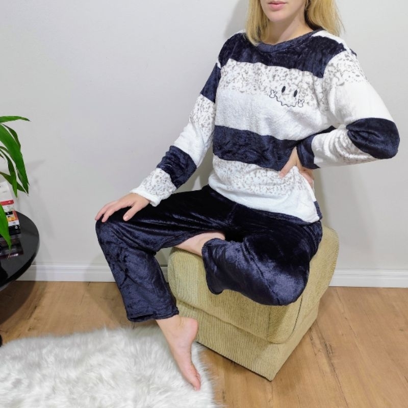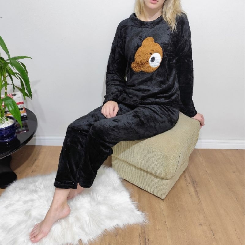 Pijama Inverno Feminino Plush Blusa E Calça Conjunto 2 Peças Longo Quentinho