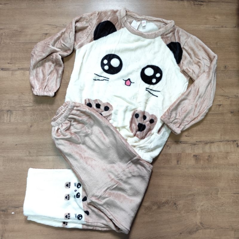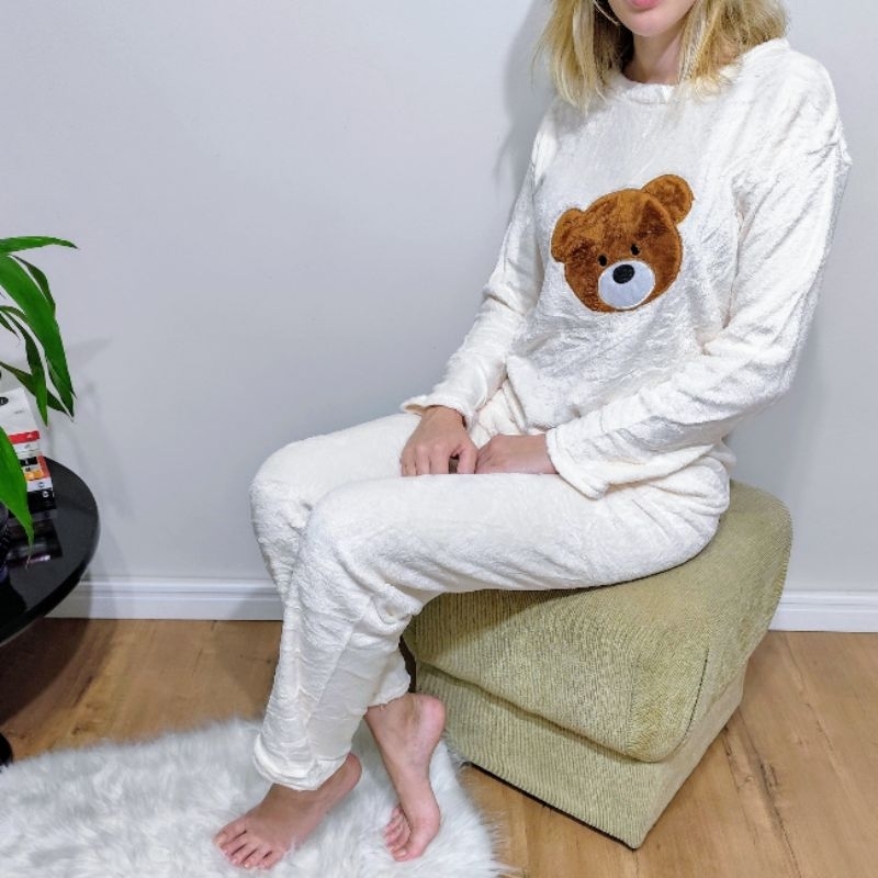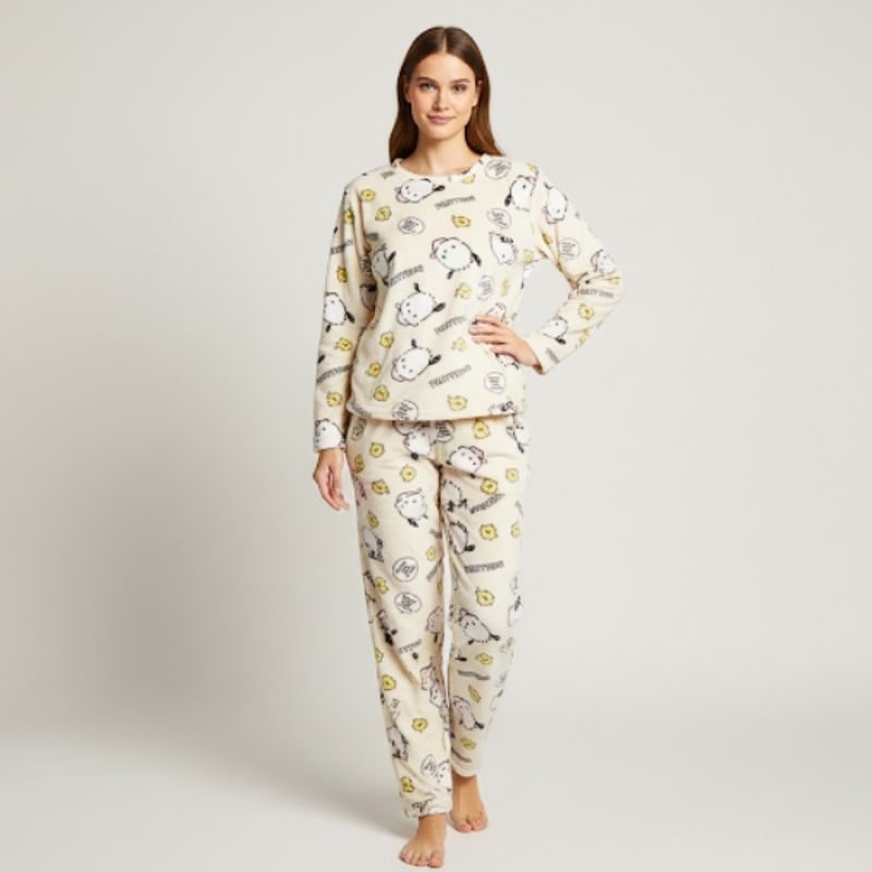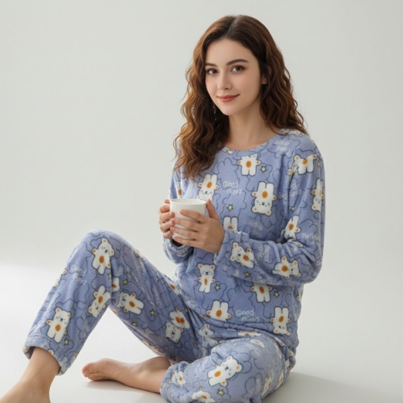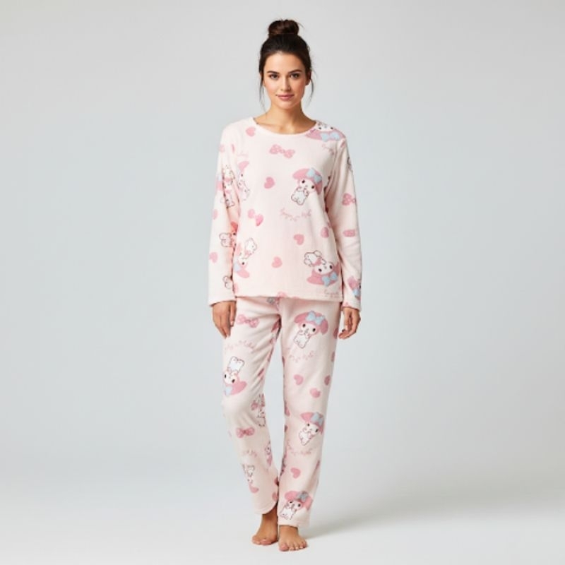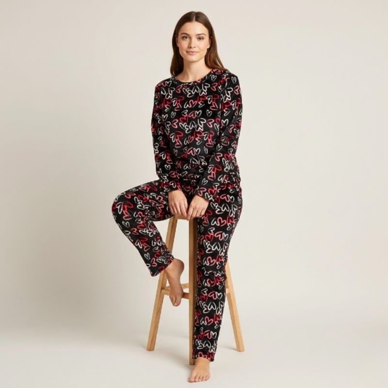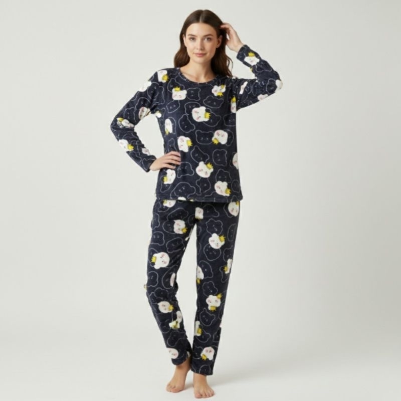 Pijama Inverno Feminino Plush Blusa E Calça Conjunto 2 Peças Longo Quentinho