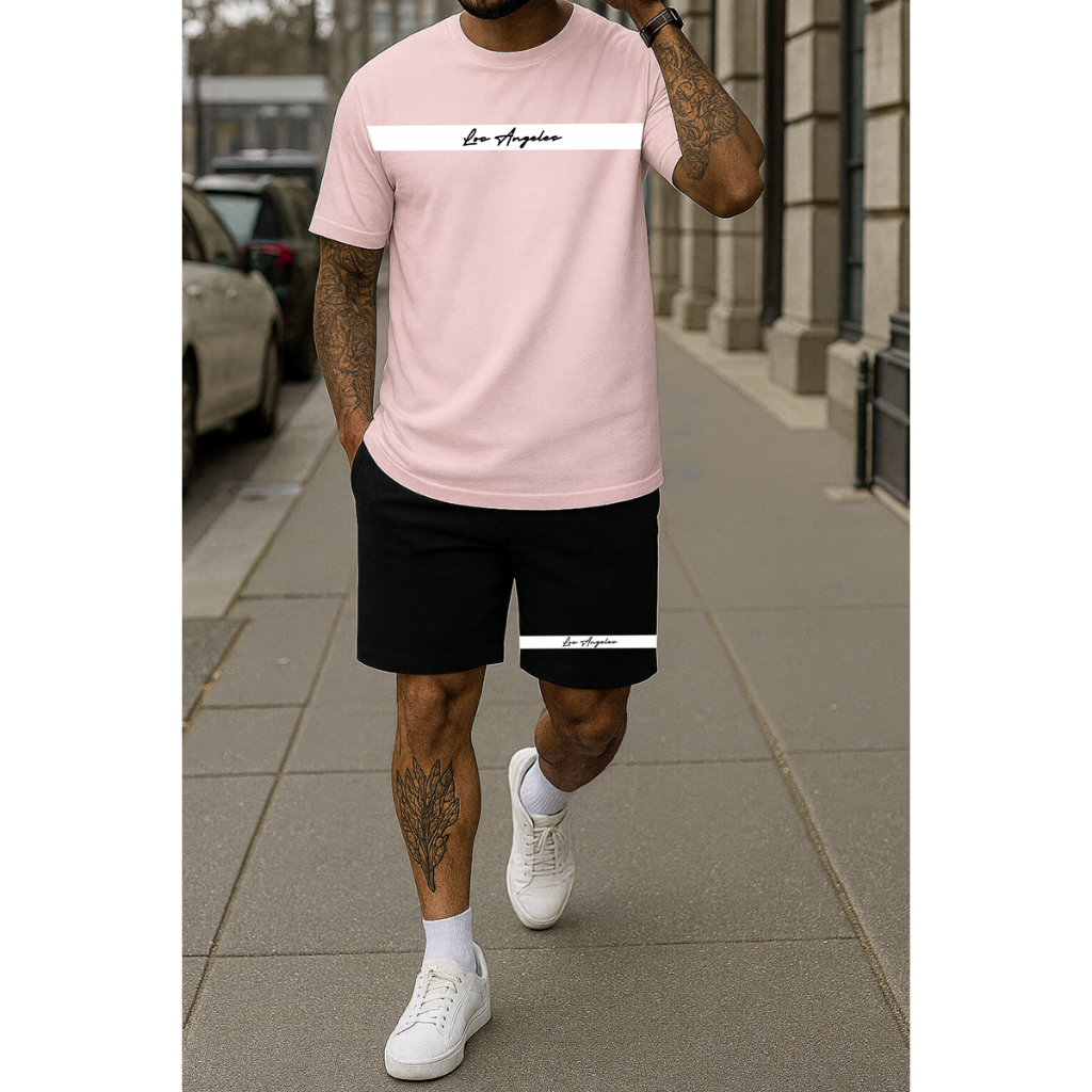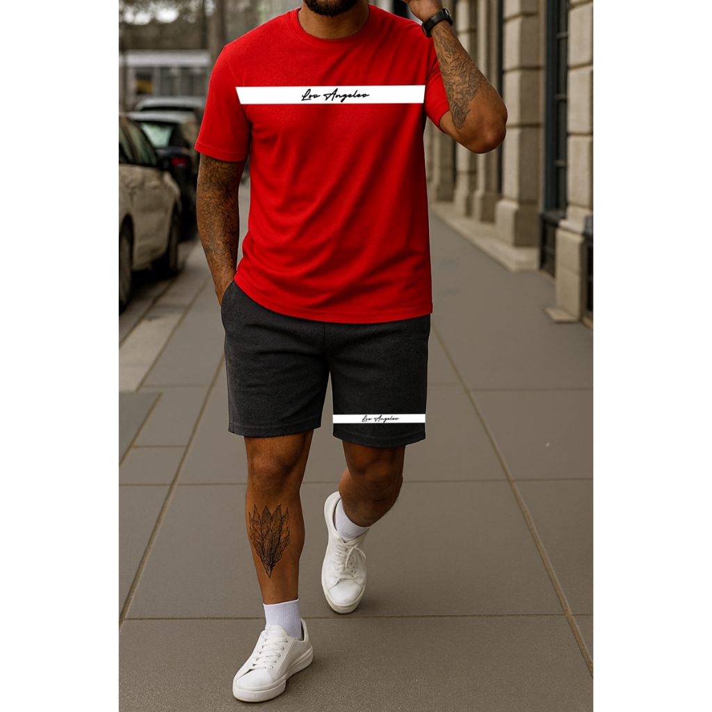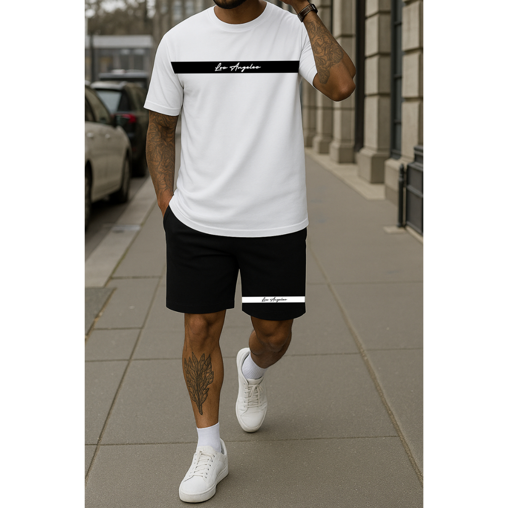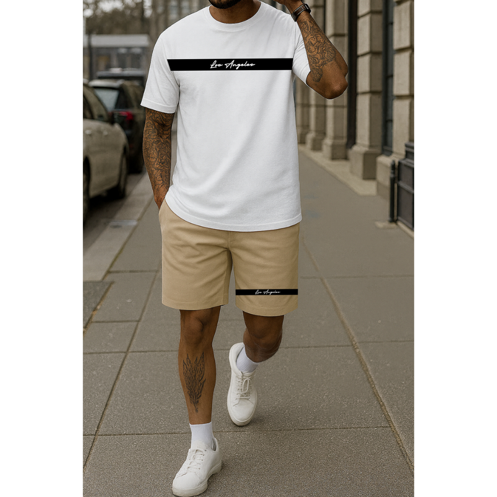 Kit Camiseta Longline e Short Moletim Los Angeles Masculino Bermuda Slim Streetwear