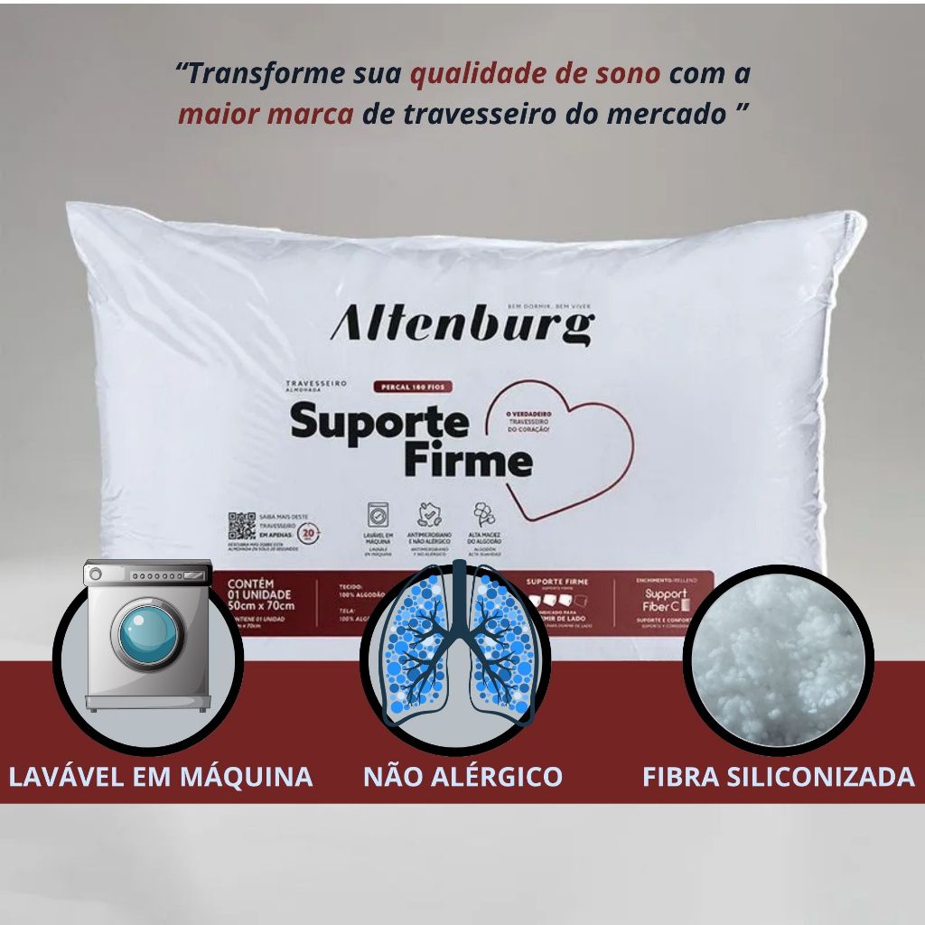 Travesseiro Altenburg Antialergico Suporte Firme 100% Algodão Percal 180 Fios 50cm x 70cm