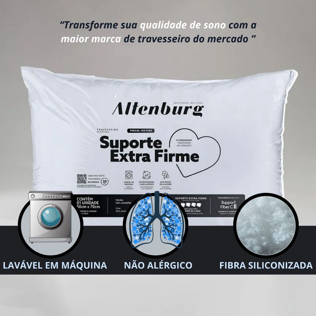 Kit 2 Travesseiros Altenburg Suporte Extra Firme 50cm x 70cm 100% Percal 180 Fios