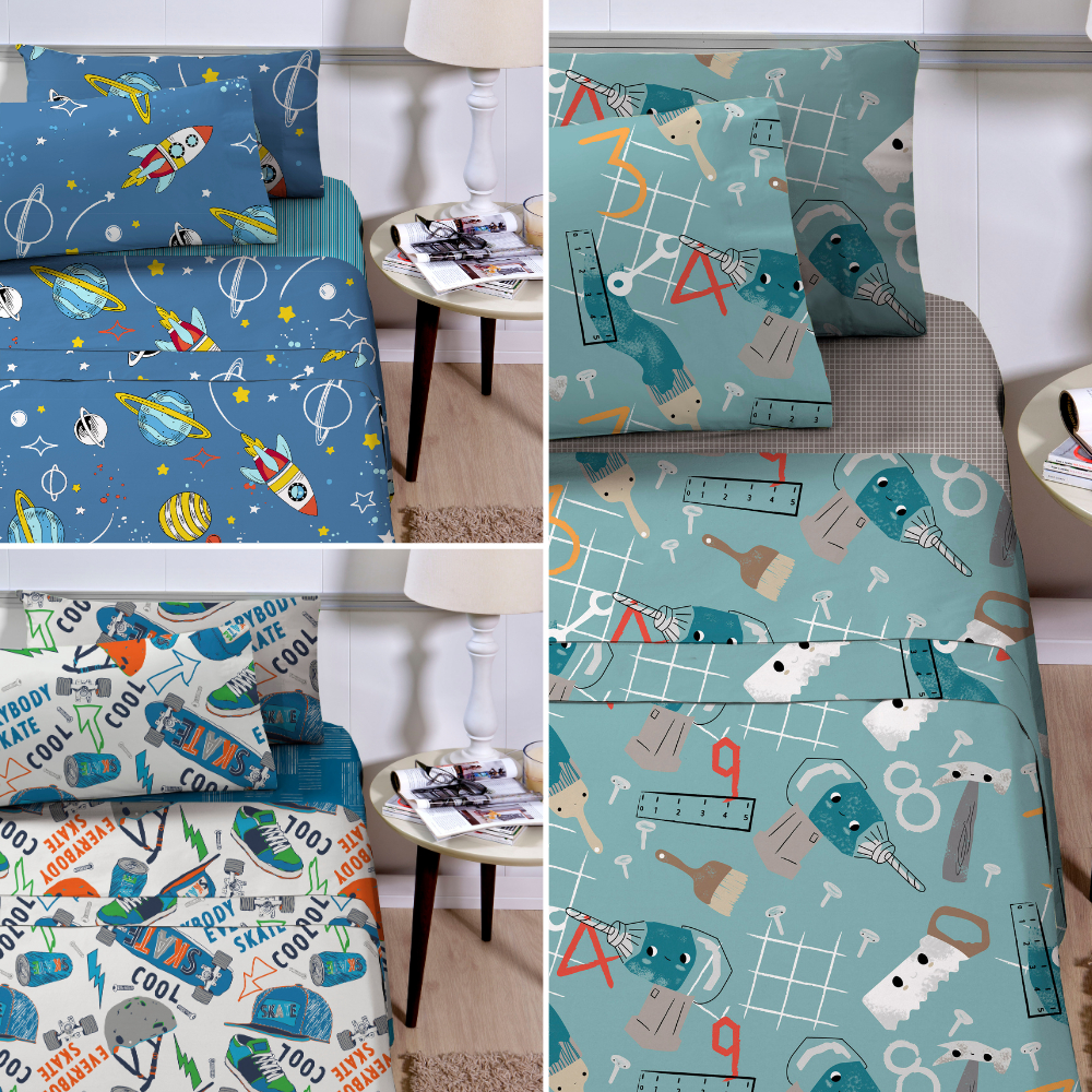 Jogo De Cama Infantil Solteiro 3 Peças Estampas Exclusivas 180 Fios Studio Mix Corttex