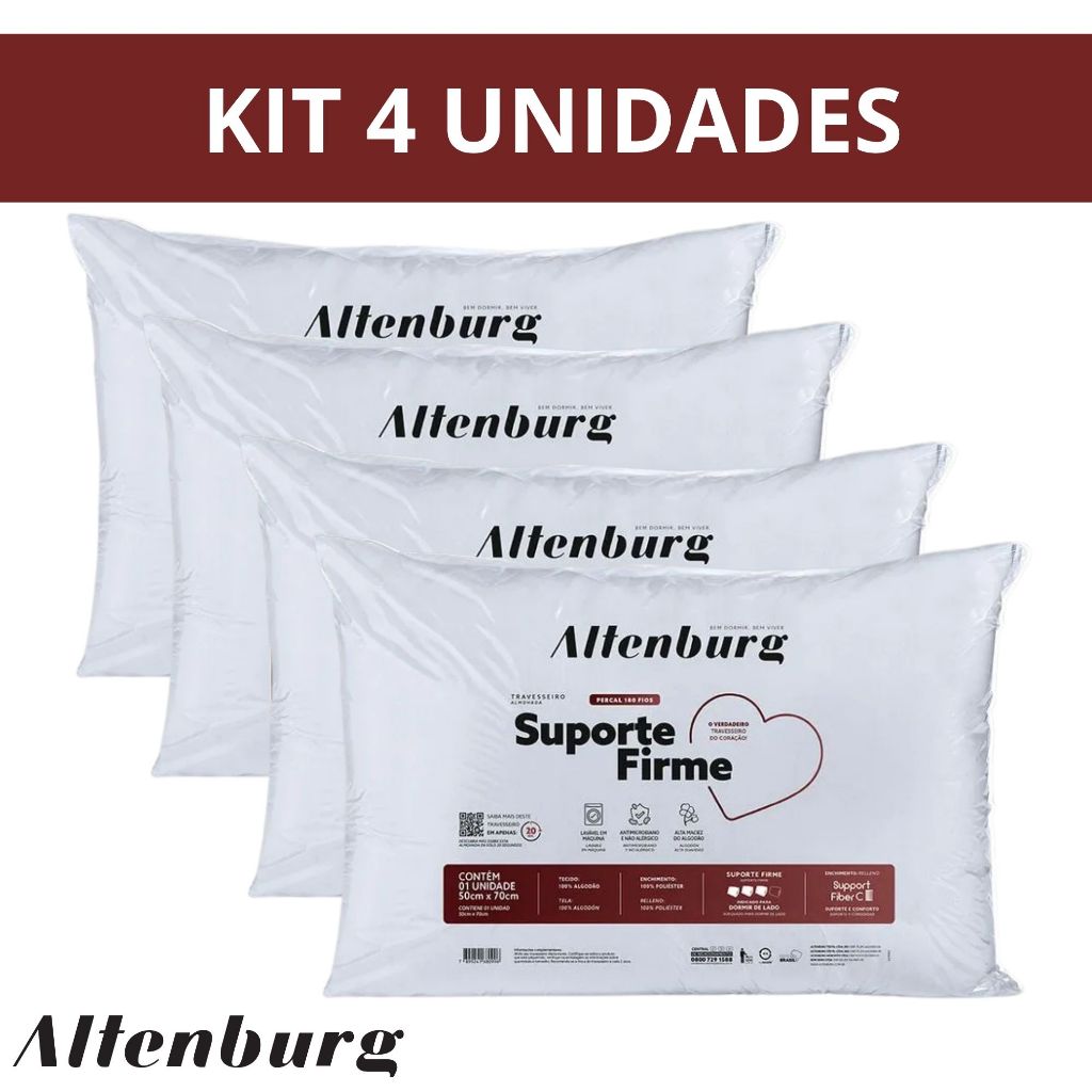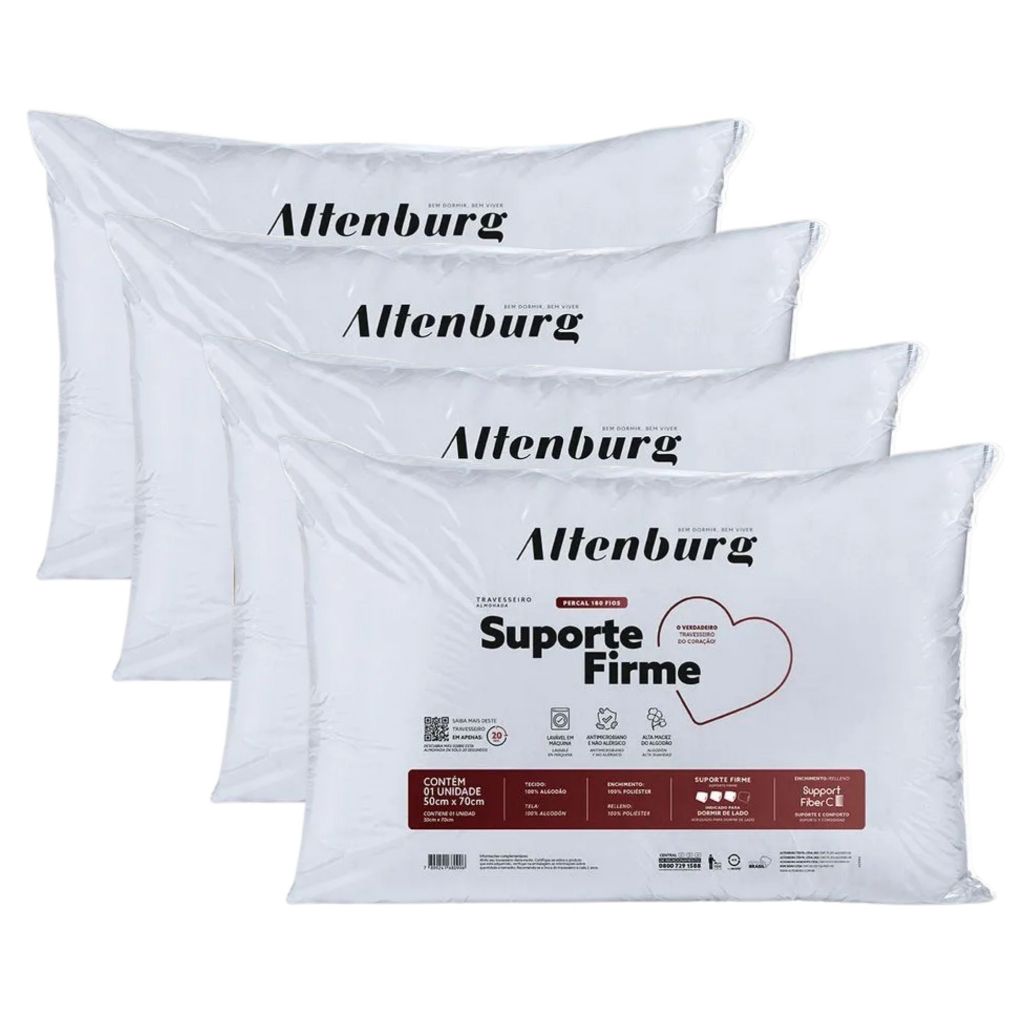Kit 4 Travesseiros Altenburg Antialergico Suporte Firme 100% Algodão Percal 180 Fios 50cm x 70cm