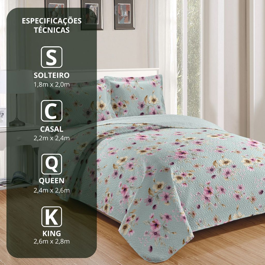 Colcha Cobre Leito Dupla Face Solteiro Casal Queen King Matelassê Com Porta Travesseiro Bouti Shabby Rozac
