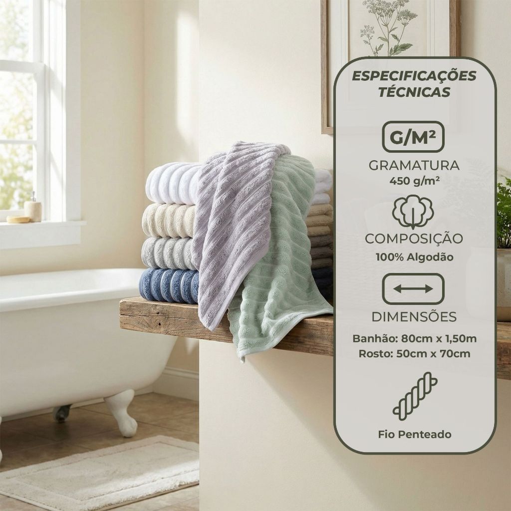 Jogo De Toalhas Banhão Gigante Fio Penteado Grossa 4 peças 450g/m2 100% Algodão Wave