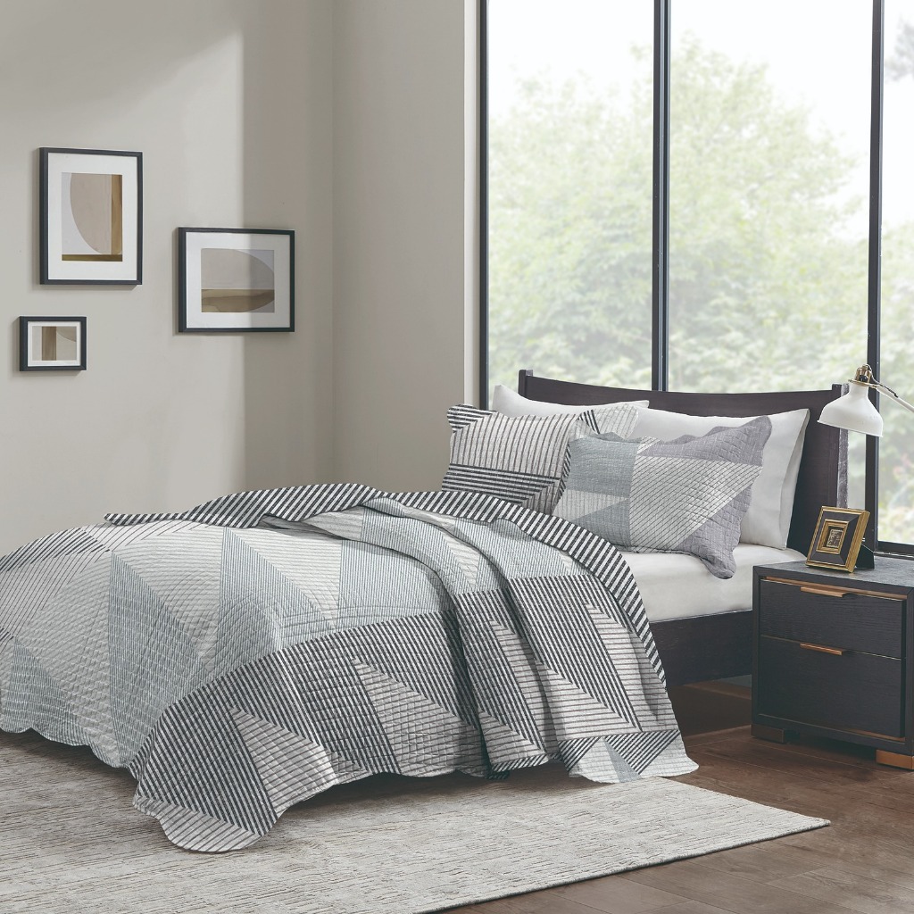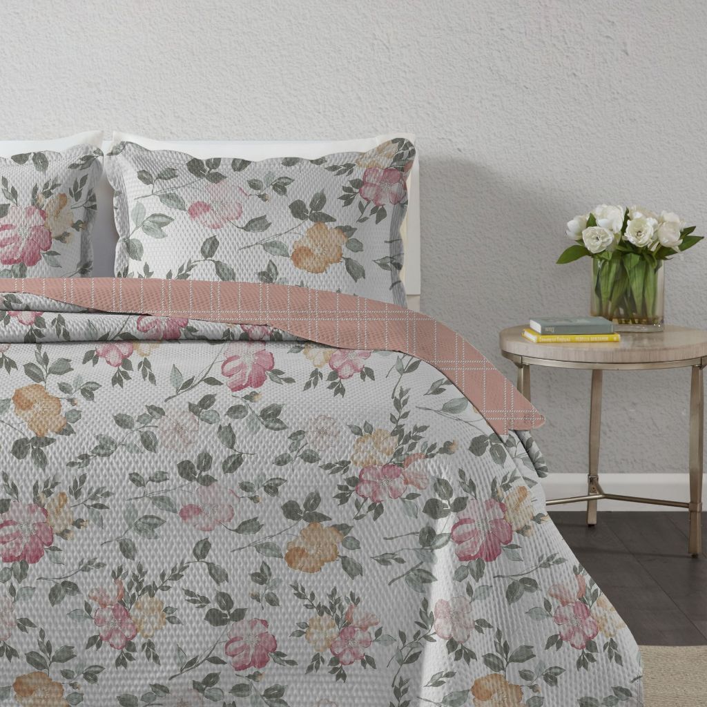 Colcha Cobre Leito Queen Kit 3 peças Dupla Face Patchwork Bouti Com Porta Travesseiro Corttex Paris
