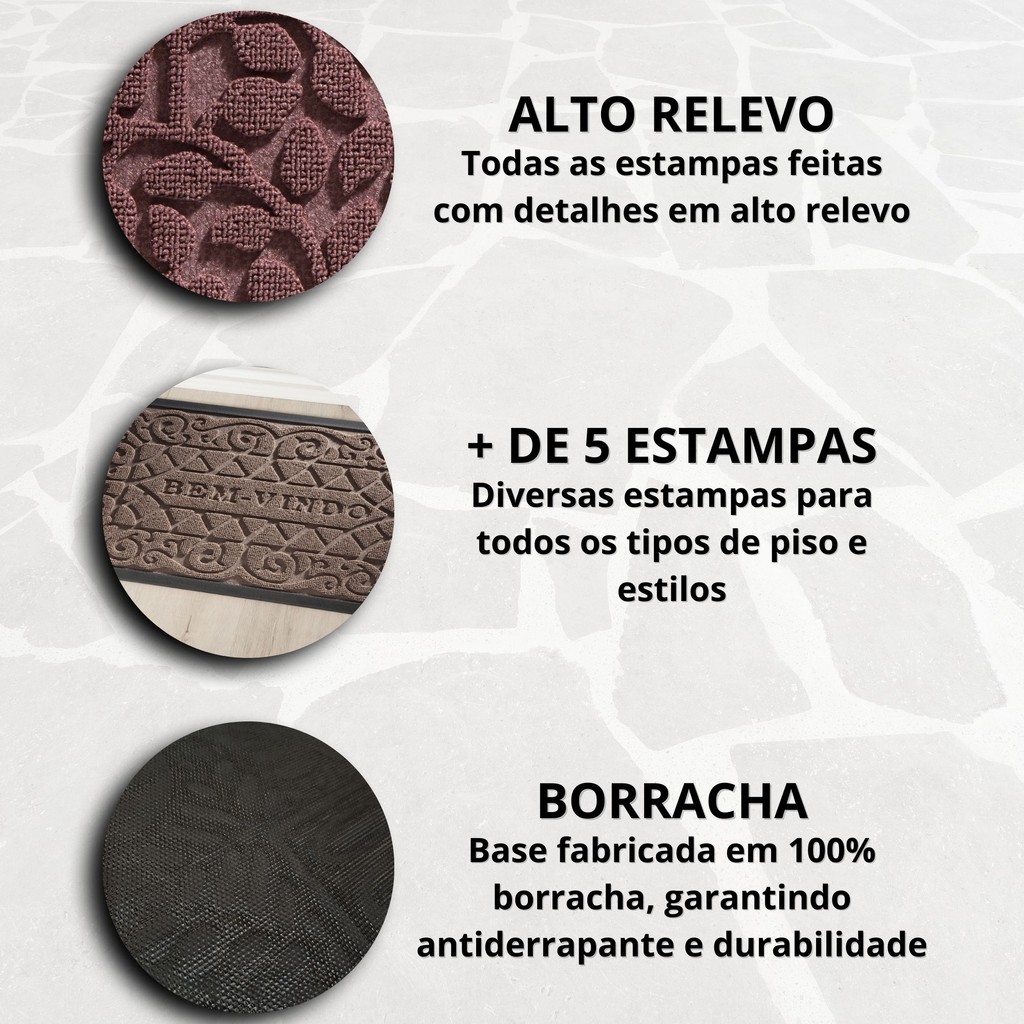 Tapete De Porta Bem Vindo Antiderrapante Capacho 60cm x 40cm Emborrachado Alto Relevo Michigan