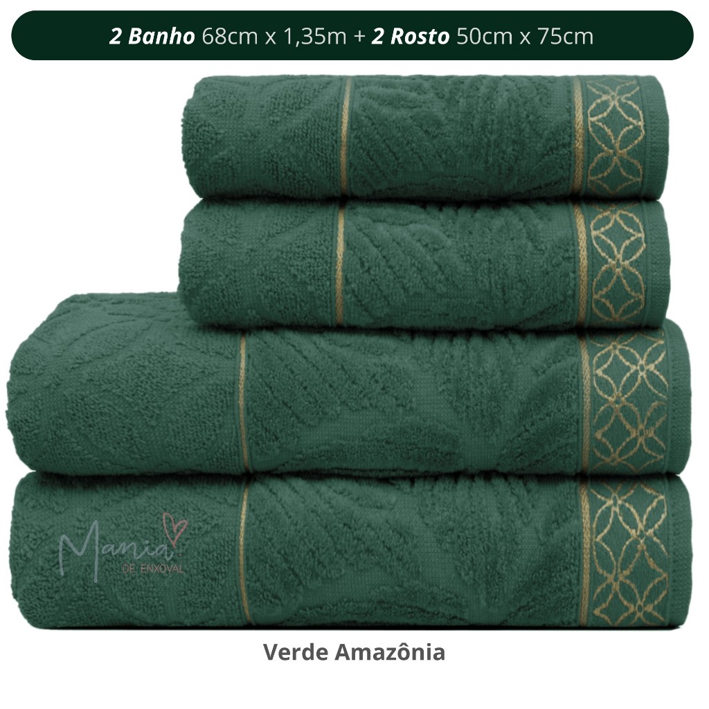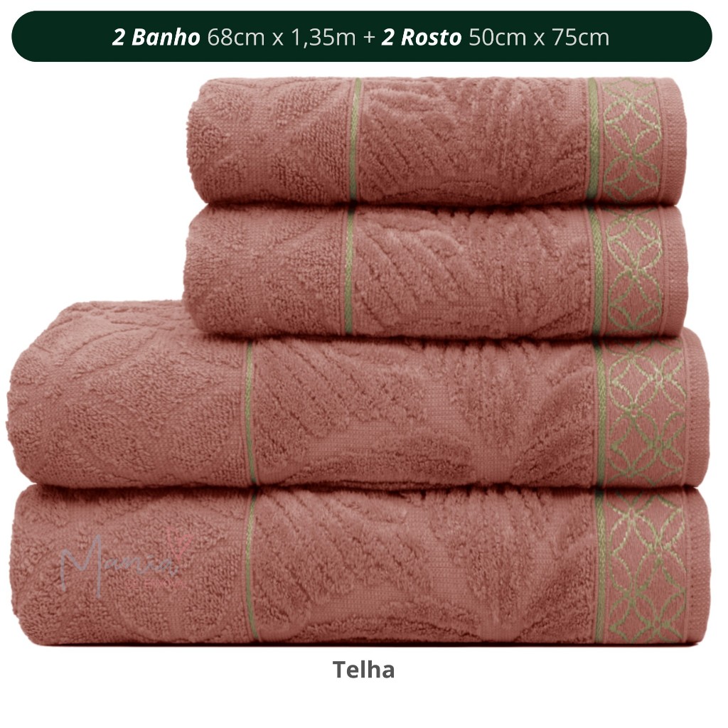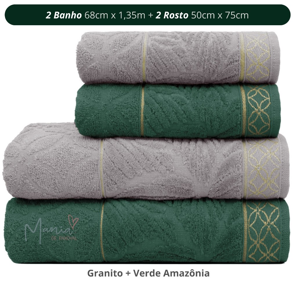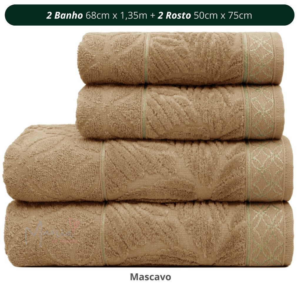 Jogo Toalha De Banho Grossa 100% Algodão Super Macia Felpuda Jacquard Barra Aveludada 4 Peças Nativa