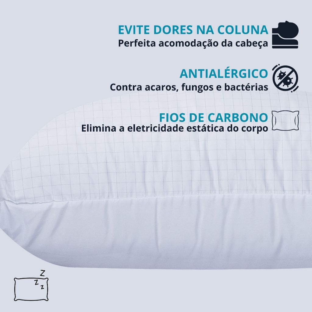 Travesseiro Antistress Antialérgico 50cm x 70cm Toque Acetinado Macio Suporte Firme
