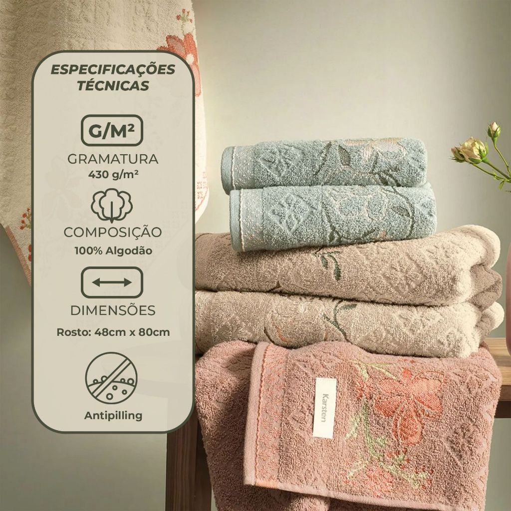 Kit 2 Toalhas De Rosto Karsten Yuna Toque Macio 100% Algodão Ótima Absorção Tecnologia Soft Max