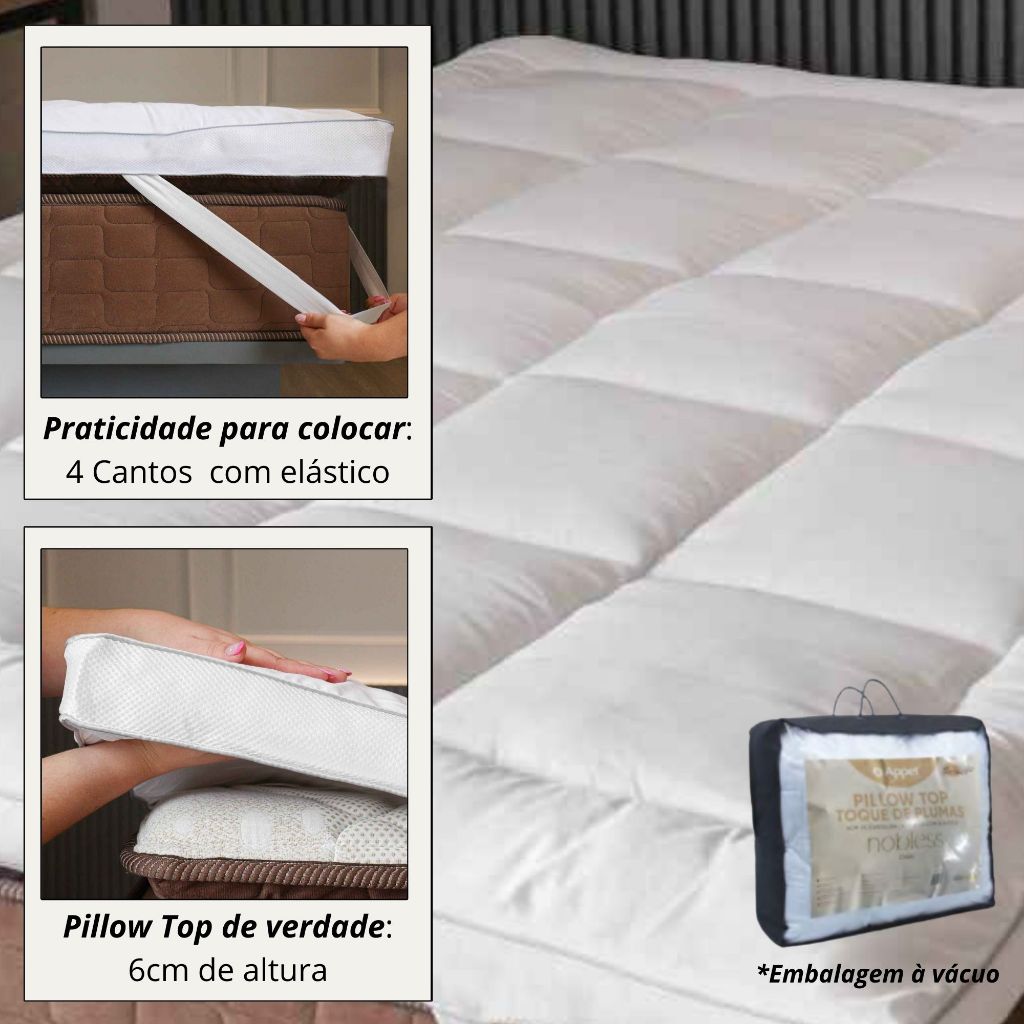 Pillow Top Toque De Plumas Casal 6cm Altura Super Macio 1000g/m² Cama Hotel Nobless Appel
