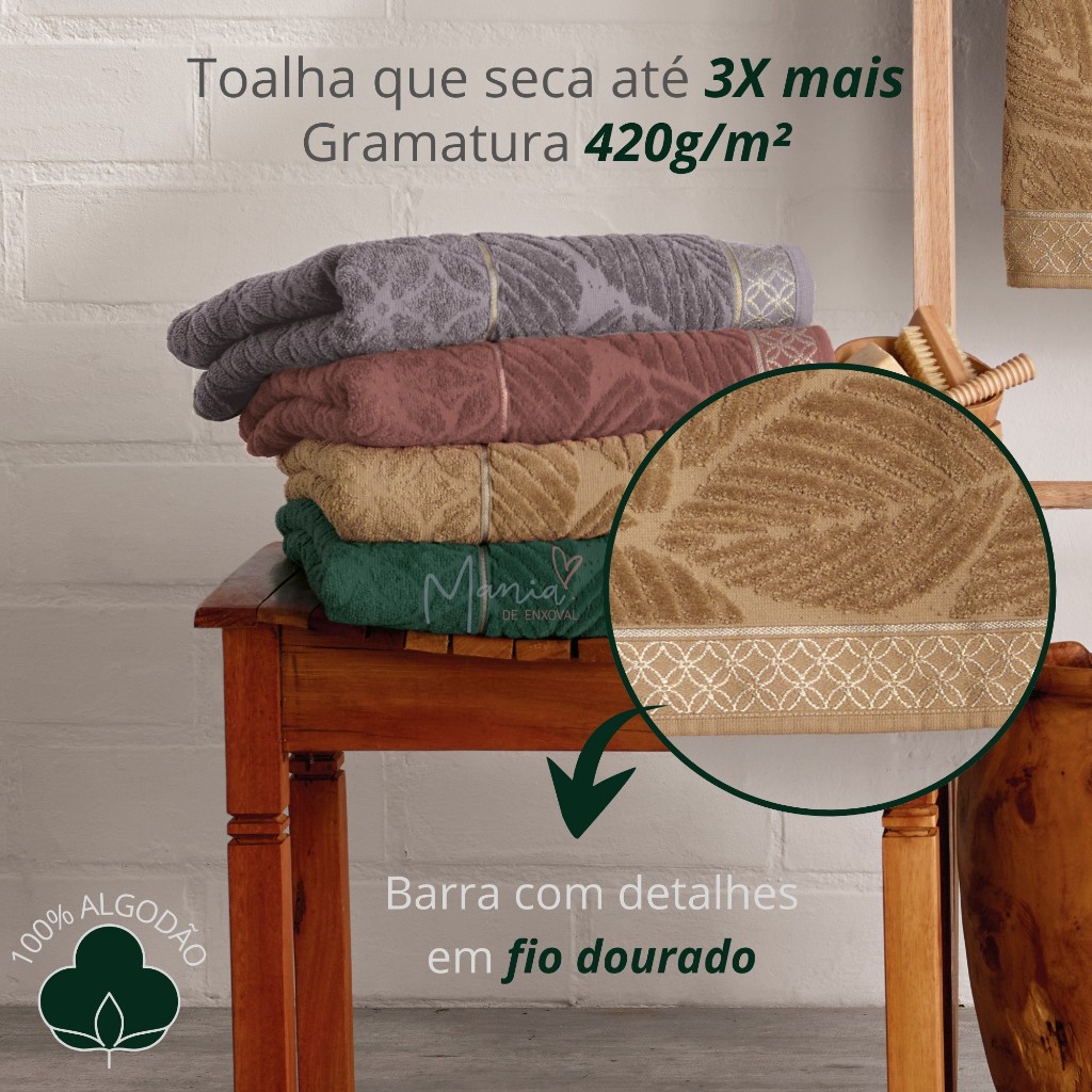 Jogo Toalha De Banho Grossa 100% Algodão Super Macia Felpuda Jacquard Barra Aveludada 2 Peças Nativa