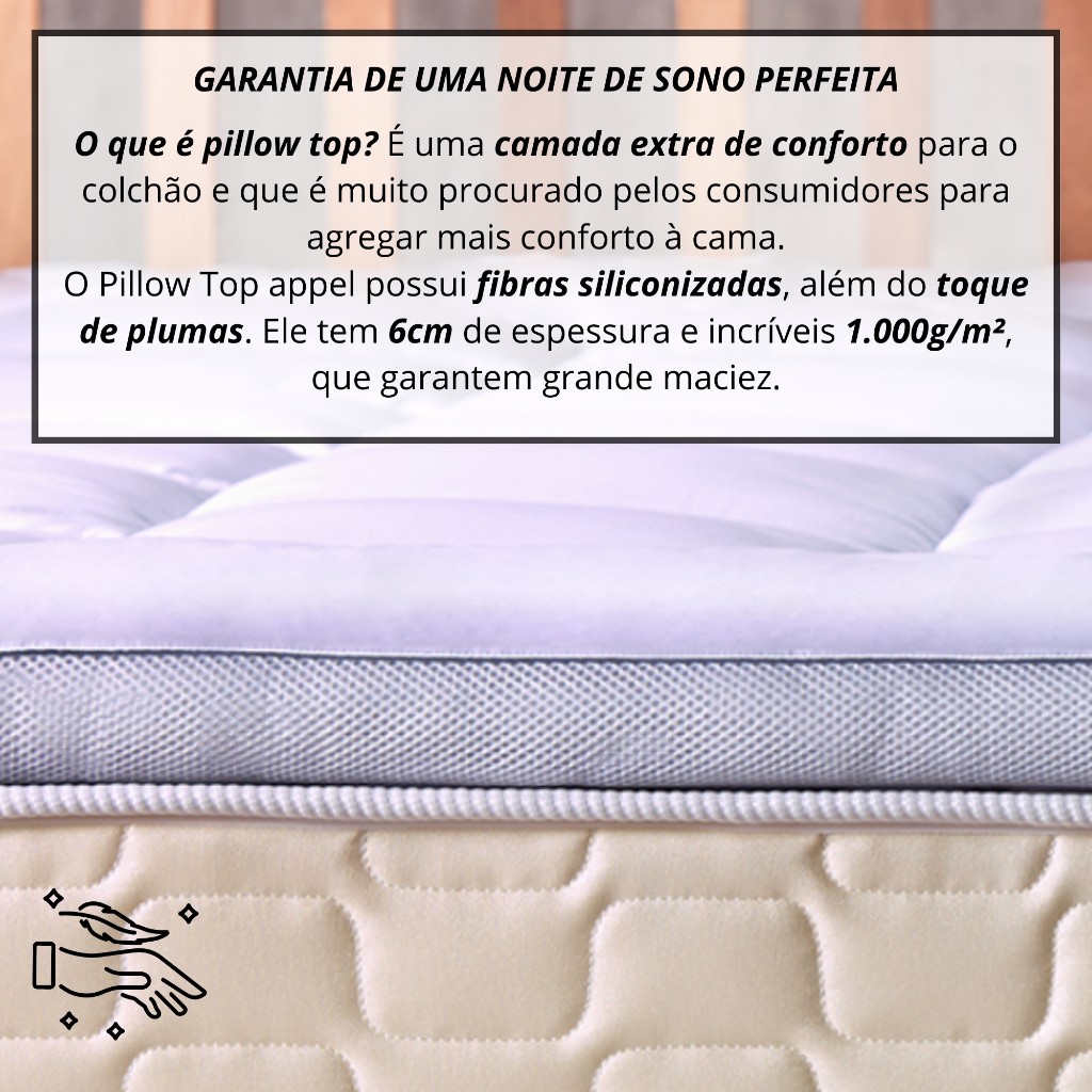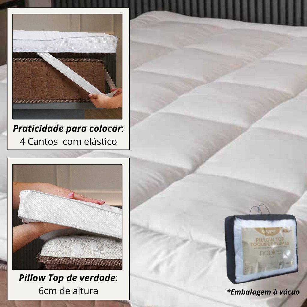 Pillow Top Toque De Plumas 6cm Altura Super Macio 1000g/m² Cama Hotel Casal Queen King Nobless Appel