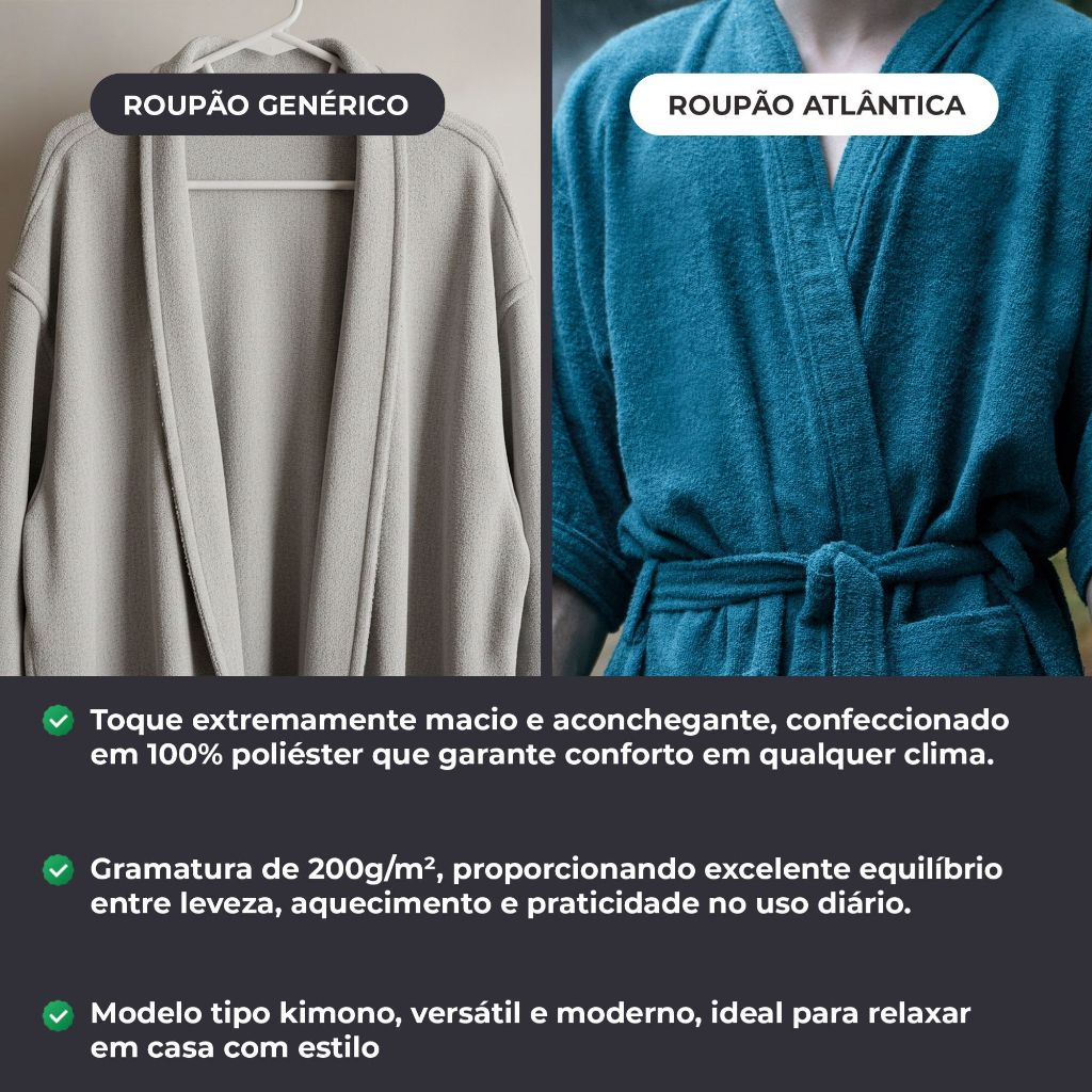 Roupão de Microfibra Plush Aveludado Com Bolso Adulto Macio Unissex Kimono Manga Longa Atlântica