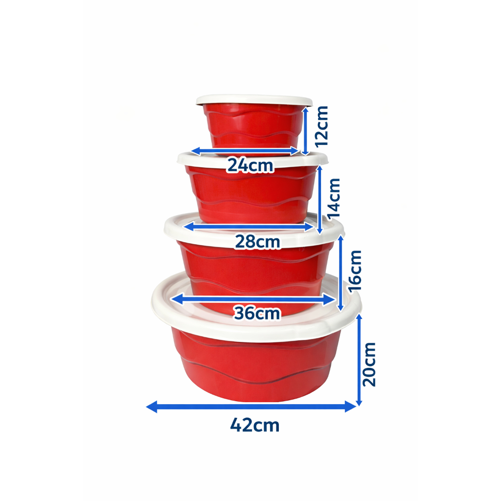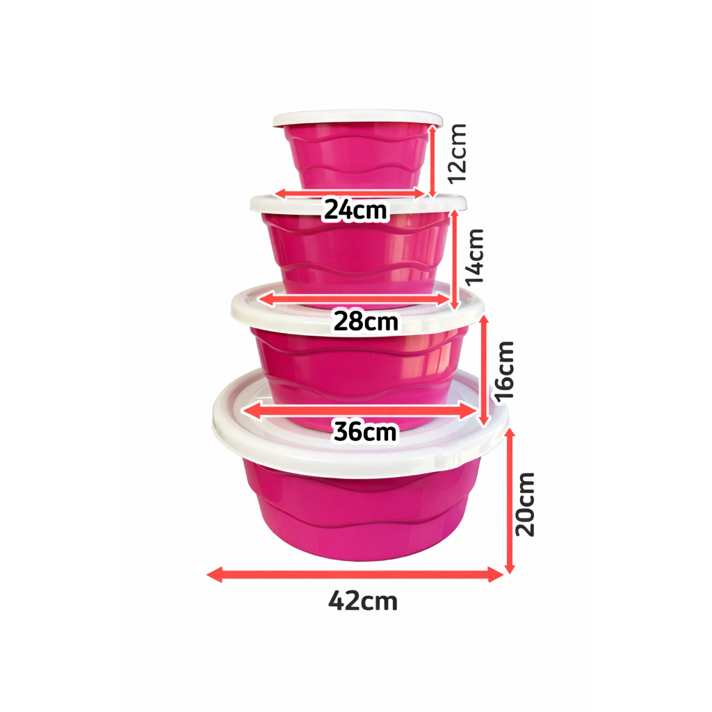 Bacia Pote Com tampa Multiuso Kit com 4 Unidades de 3, 5, 7 e 12 Litros