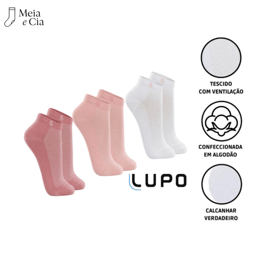 Kit 6 Pares Meias Lupo Sport Feminina Original | Cano Curto Algodão Confortável e Durável