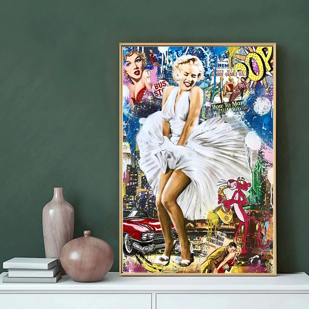 Quadro decorativo 1 peça 40x60 Marilyn Monroe Moda moderna grafite rua pop arte para sala quarto